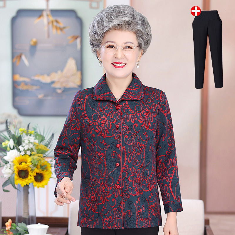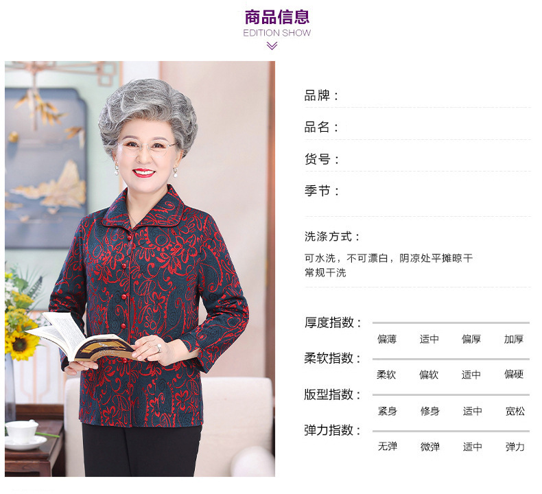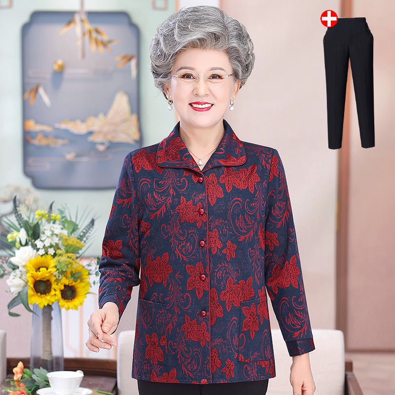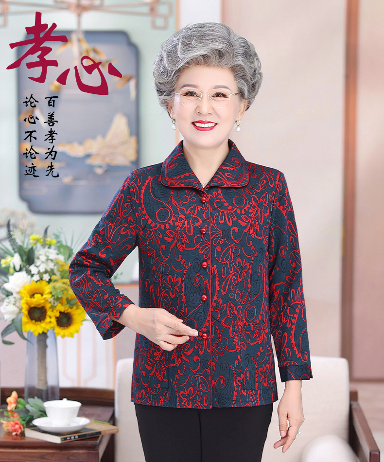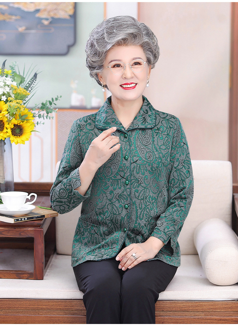 할머니 봄 긴팔 셔츠 중년 및 노인 여성 봄 여름 얇은 코트 60 세 어머니 탑 노부인 옷스토어 가기