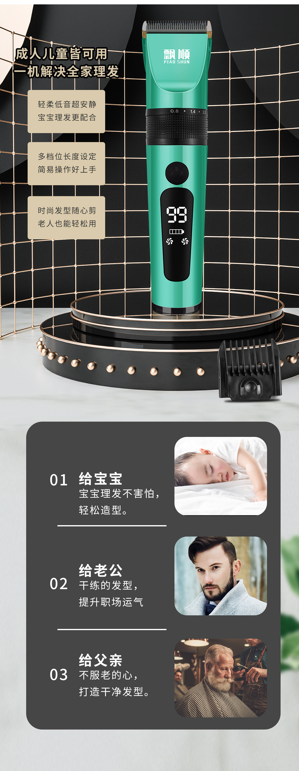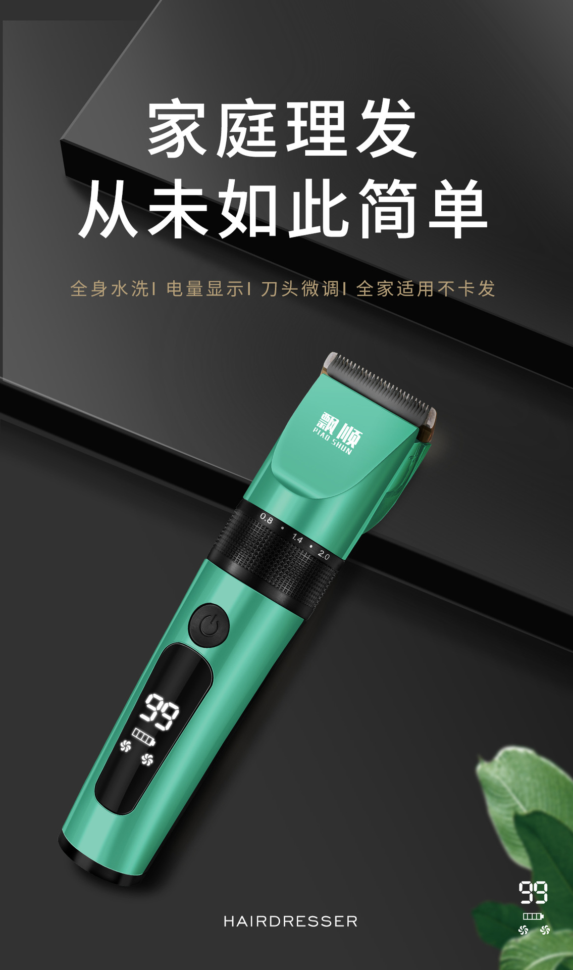 플로팅 워터워시 이발기, 전기 이발기, 미용실 및 가정용 성인 이발기, 세라믹 칼날, 5단계 조절, 다기능스토어 가기