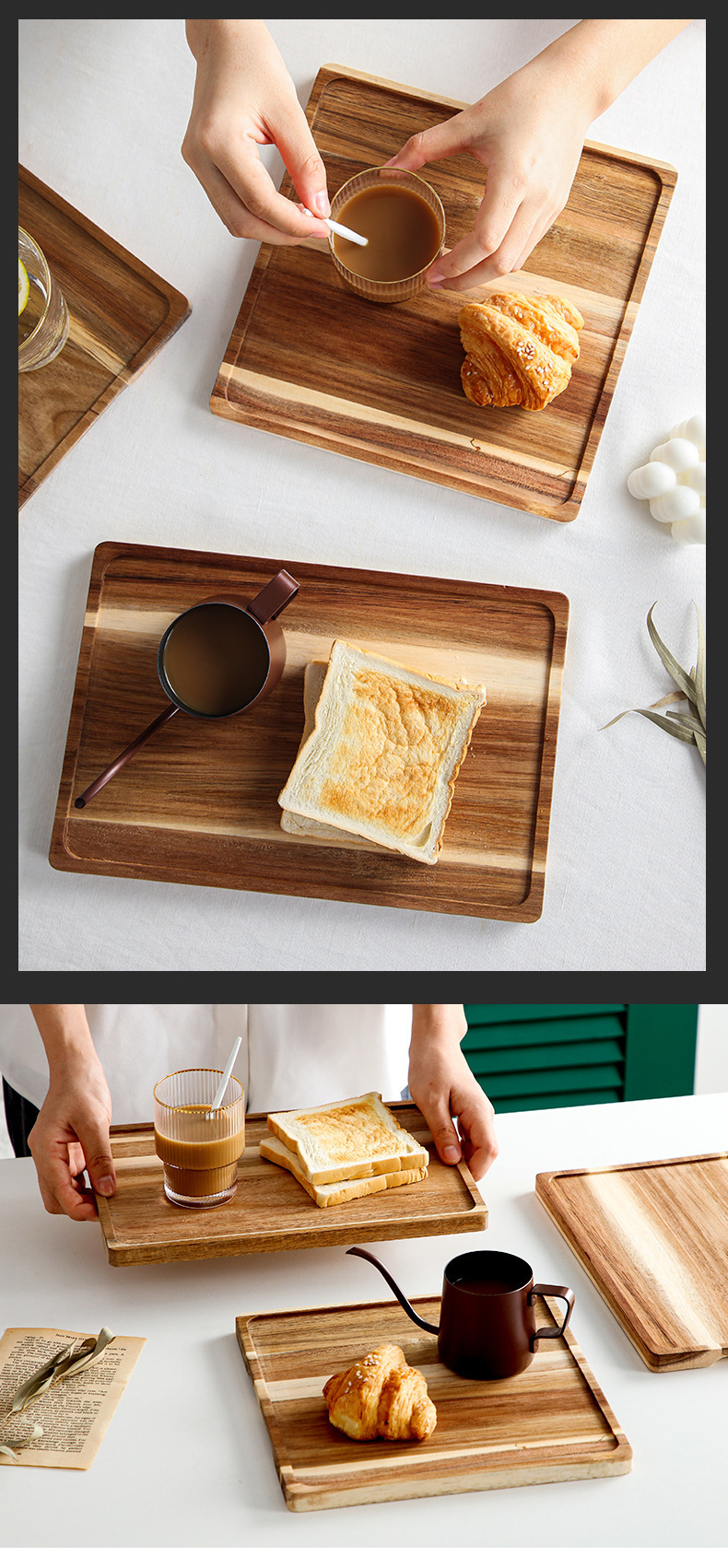 원목 트레이, 아카시아 나무 트레이, 사각 나무 트레이, 통나무 아침식사 트레이, 과일 케이크 트레이, 수저 보관 트레이