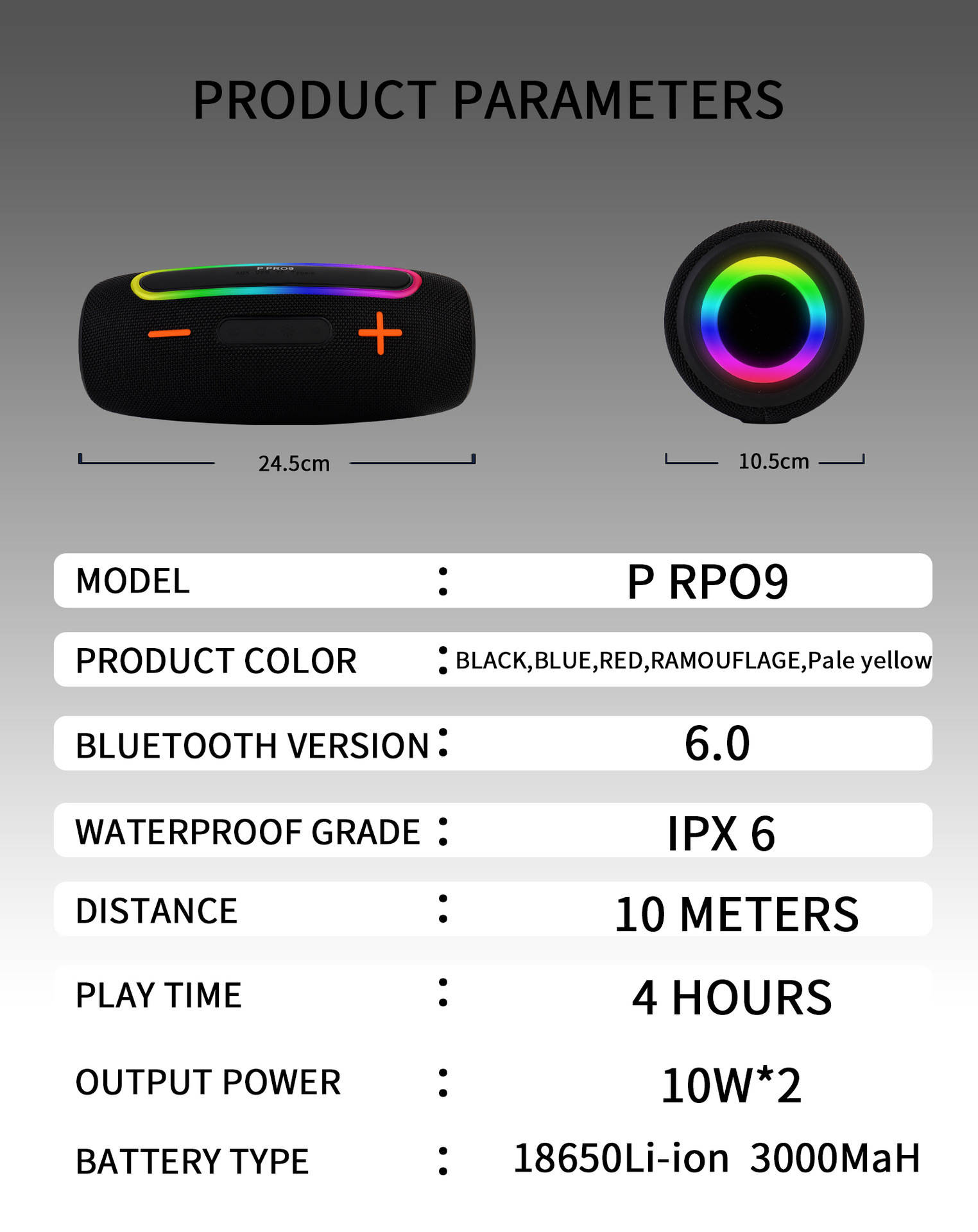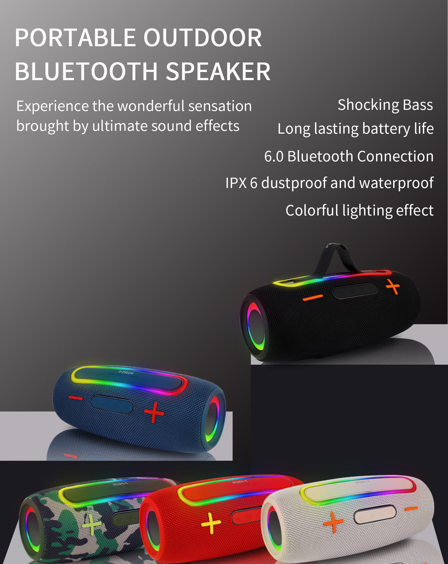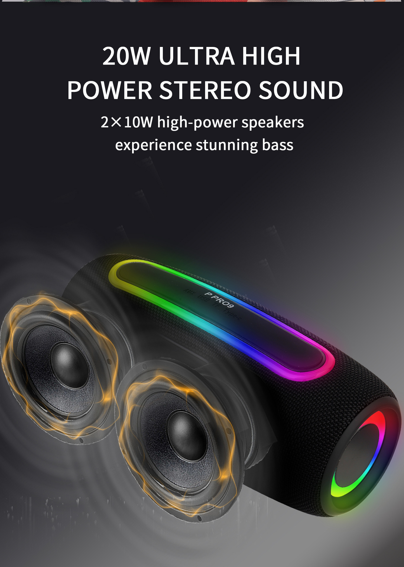 블루투스 스피커 오디오 휴대용 패브릭 커버 크로스보더 신제품 P PRO9 휴대용 고출력 RGB 서브우퍼스토어 가기