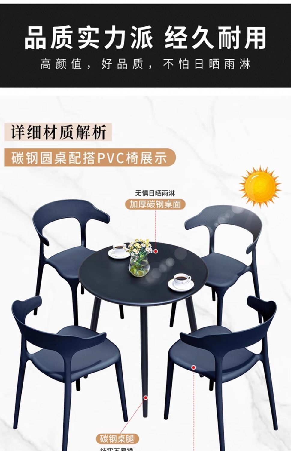 • 【의자 4개】+70 탄소강 원형 테이블