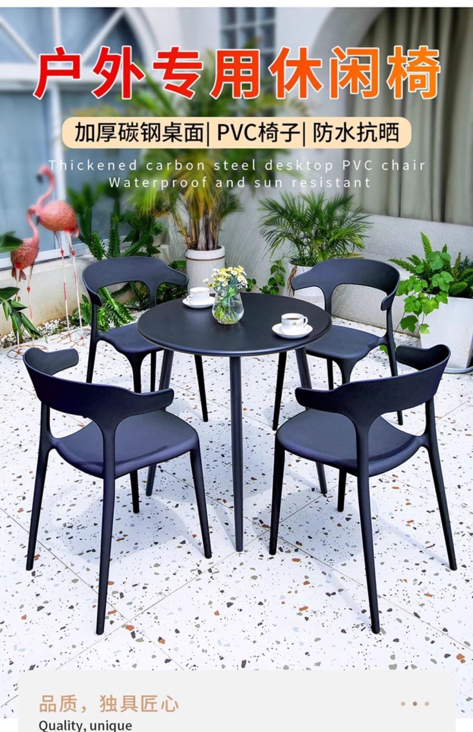 인터넷 연예인 야외 직사각형 식탁과 의자 조합 탄소강 야외 발코니 안뜰 밀크티 숍 야외 철제 테이블스토어 가기