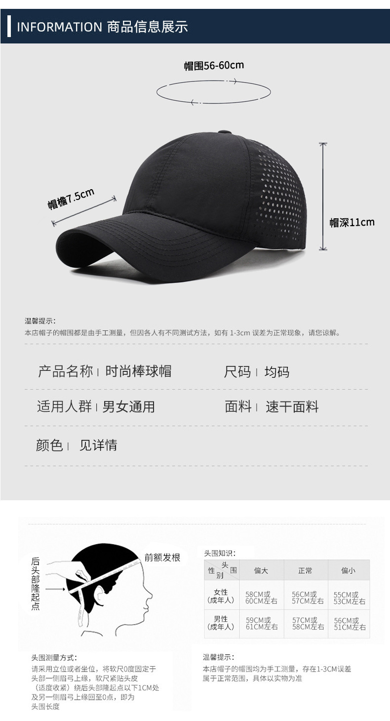 여름 새로운 스타일의 가볍고 얇은 후면 천공 통기성 속건성 조절 가능한 남성용 및 여성용 피크 캡 등산용 태양 보호 야구 모자스토어 가기