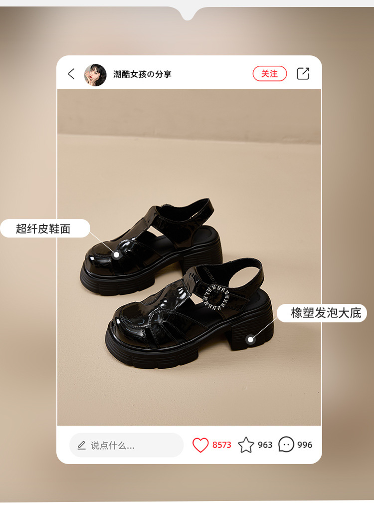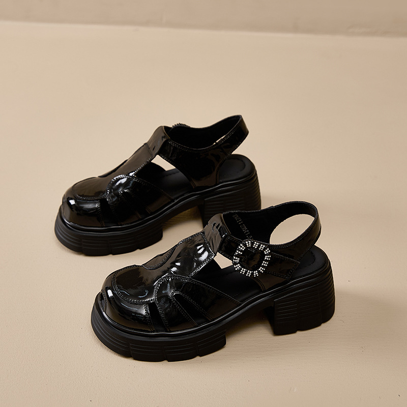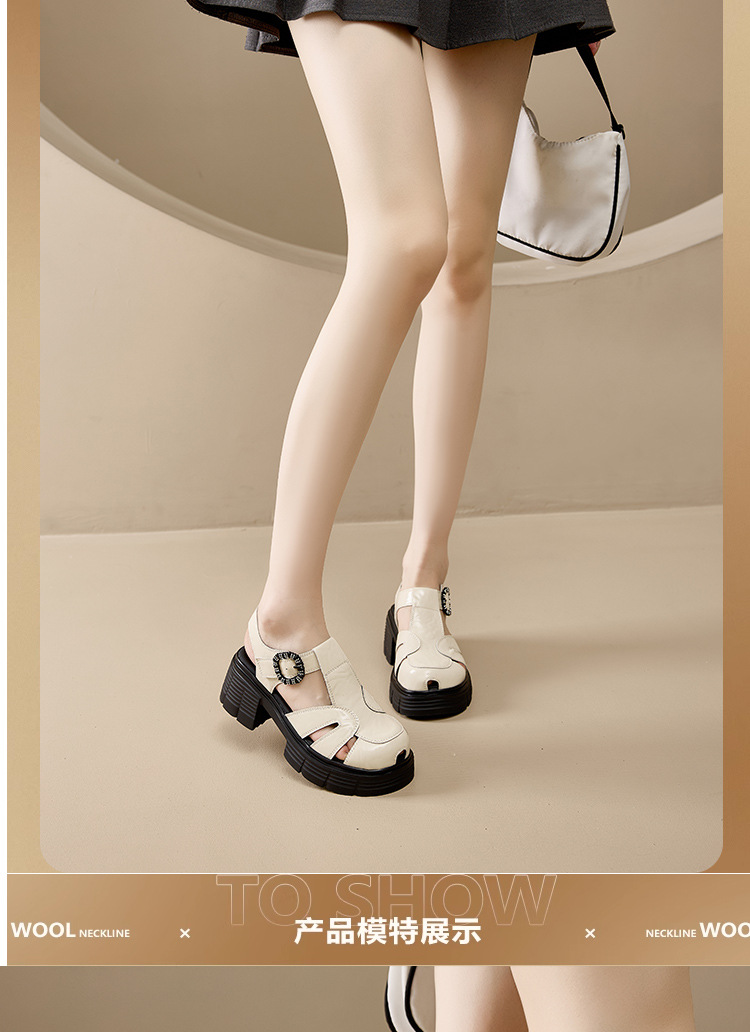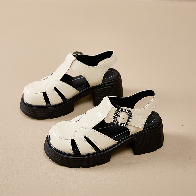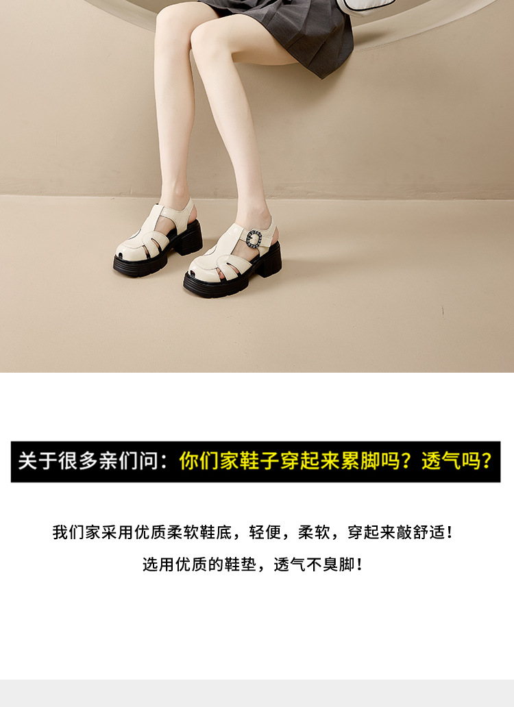 두꺼운 밑창 강화 외국 스타일의 뒤꿈치없는 외출 로마 신발 2025 봄 폭발 돼지 케이지 신발스토어 가기
