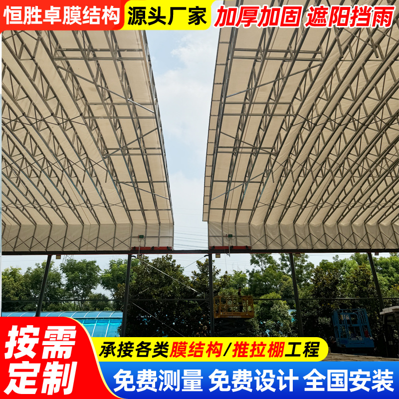 户外泳池遮阳电动雨棚 大型遥控活动伸缩推拉篷 杭州工厂仓库移动雨蓬