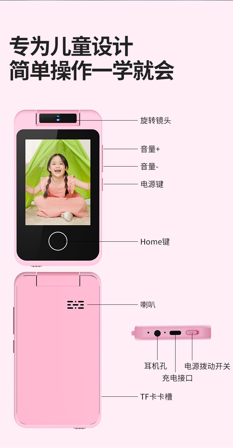 국경 간 새로운 고화질 어린이 미니 휴대 전화 카메라 다기능 180도 회전 사진 및 비디오 교육 카메라
