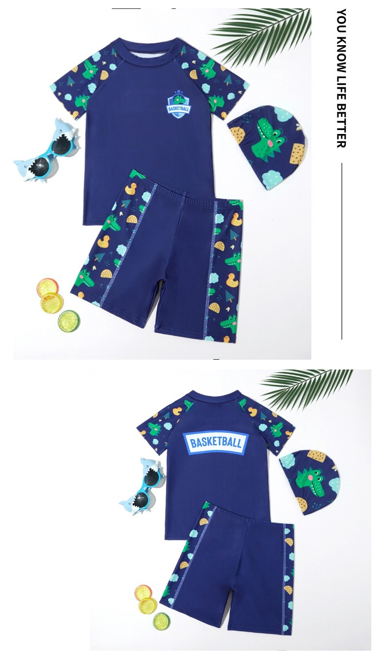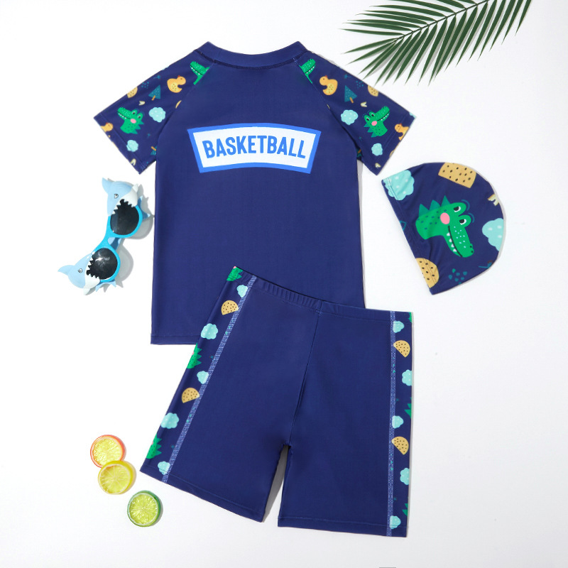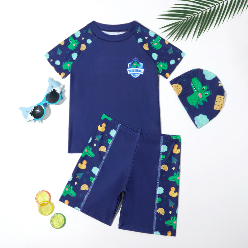 새로운 어린이 수영복 소년 청소년 소년 반팔 수영 트렁크 학생 중대형 어린이 스플릿 온천 자외선 차단 수영복
