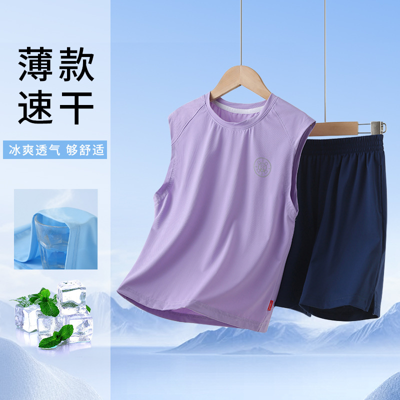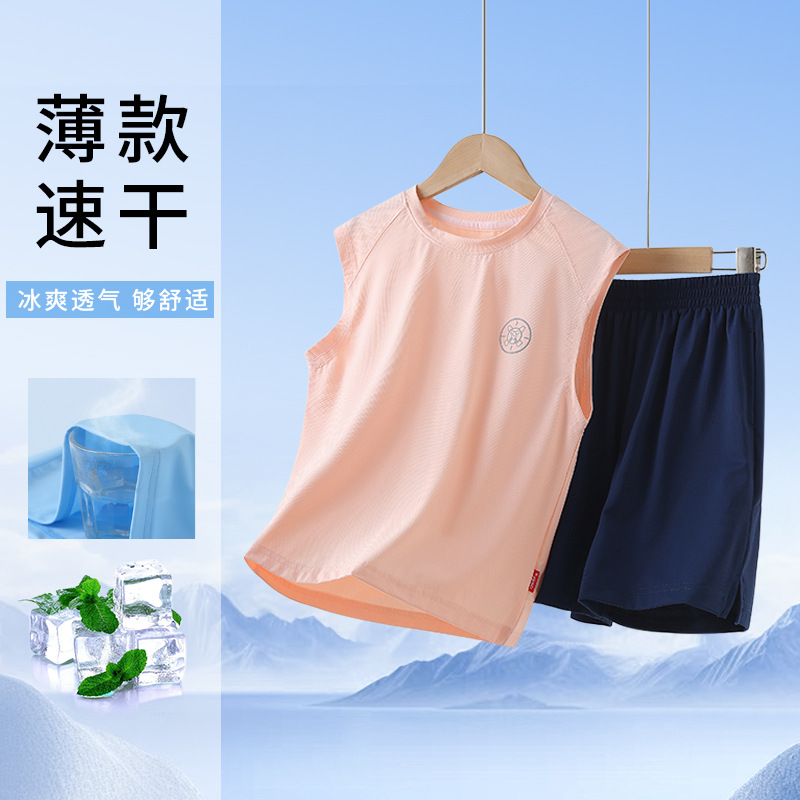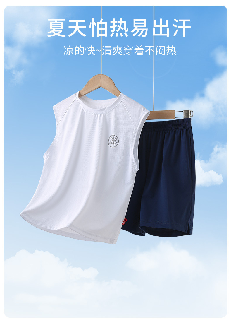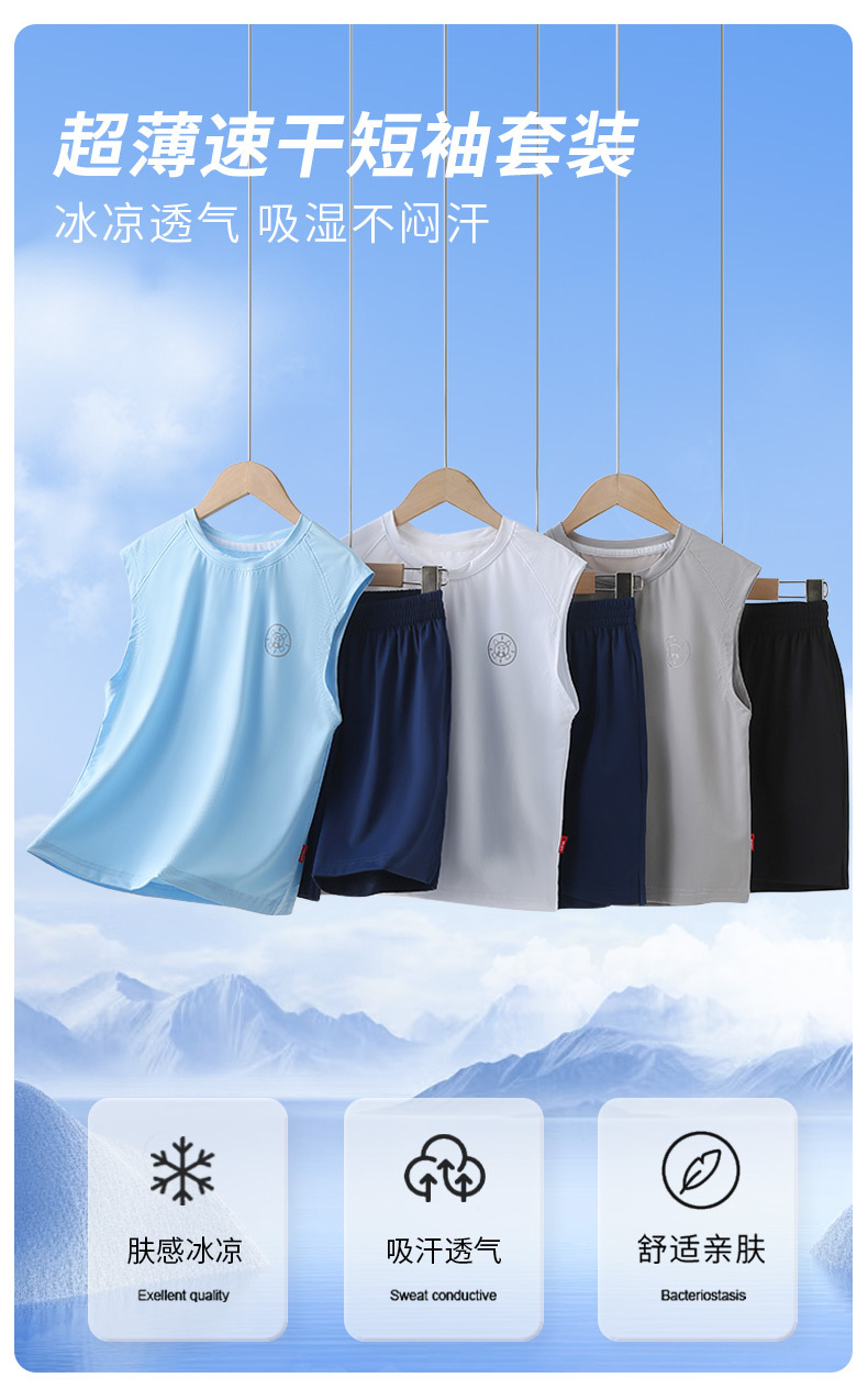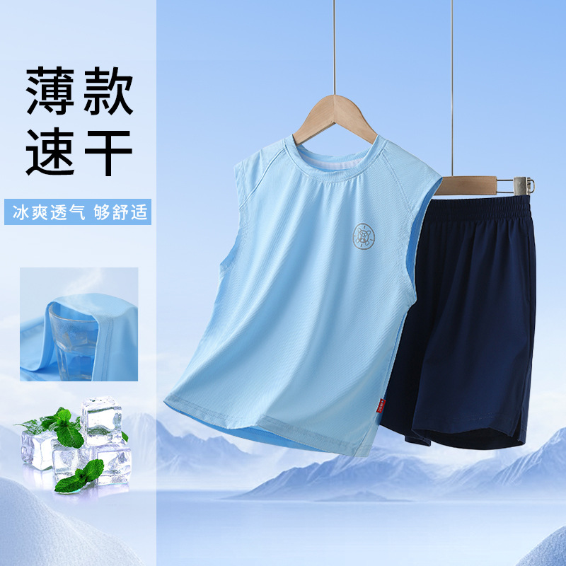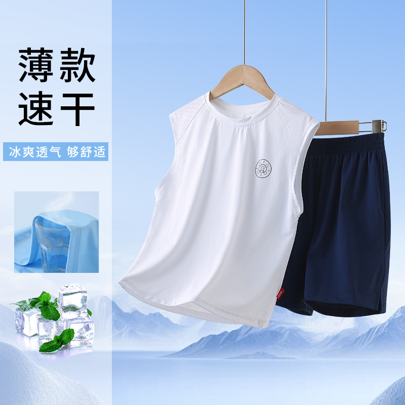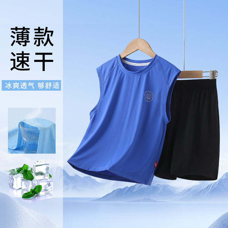 남학생 스포츠 빠른 건조 조끼 세트 여름 통기성 2025 새로운 어린이 여름 옷 소년 공 옷 투피스 세트스토어 가기