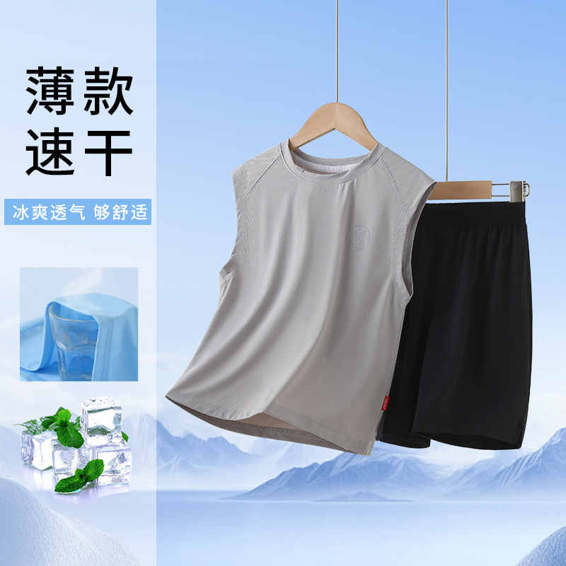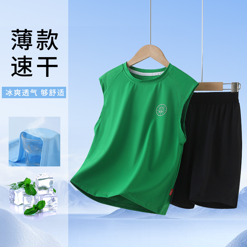 남학생 스포츠 빠른 건조 조끼 세트 여름 통기성 2025 새로운 어린이 여름 옷 소년 공 옷 투피스 세트