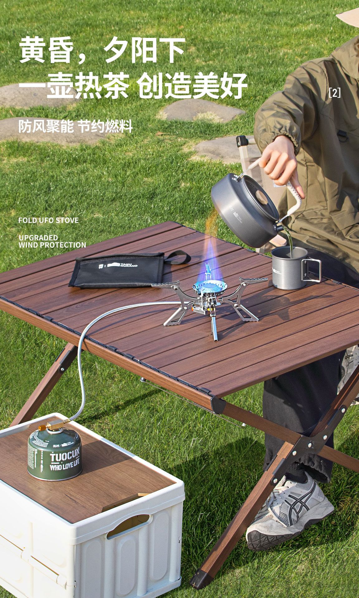 Tuocun 야외 캠핑 스토브 분할 방풍 스토브 휴대용 캠핑 제조 업체 도매 UFO 스토브