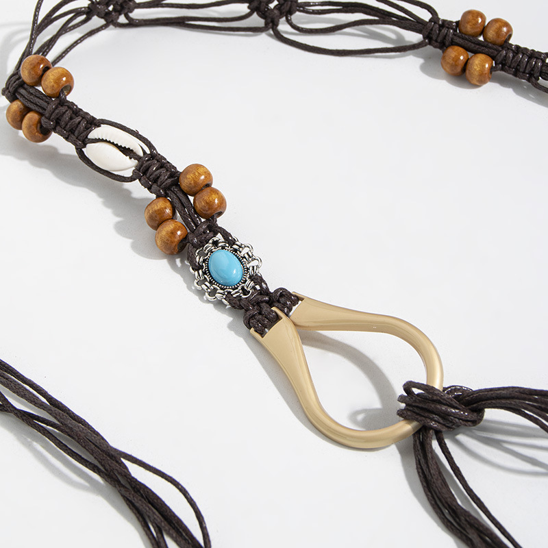 보헤미안 벨트 합금 버클 쉘 허리 체인 여성 허리끈 장식 드레스 에스닉 스타일 액세서리 허리띠