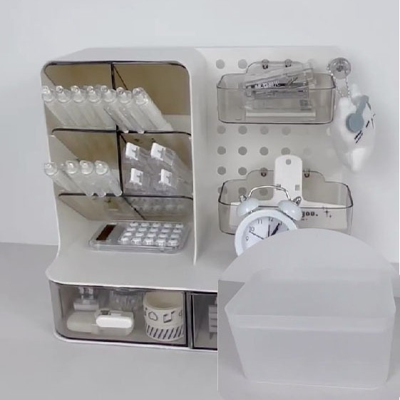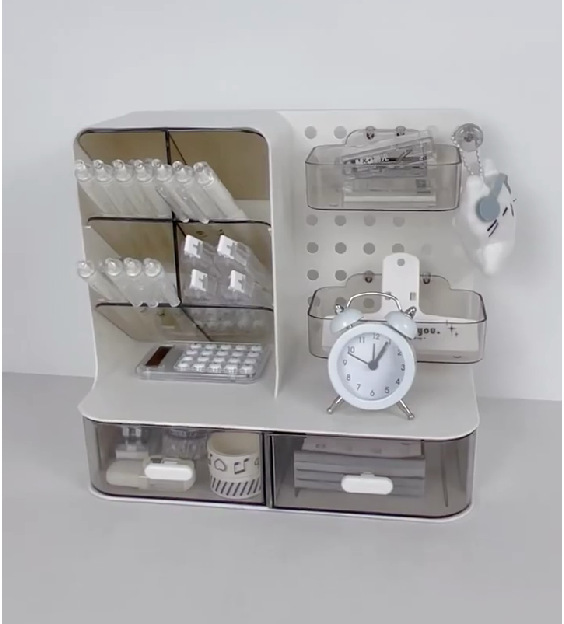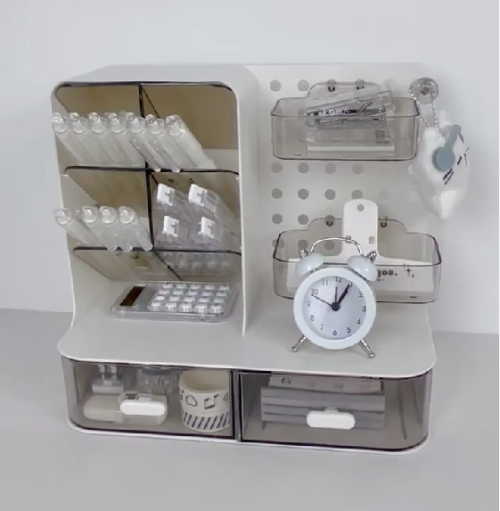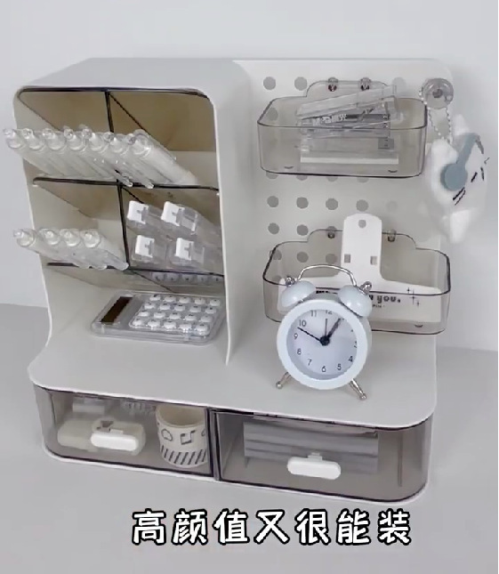 桌面洞洞板收纳盒抽屉式学生书桌宿舍透明文具置物架笔筒整理盒子