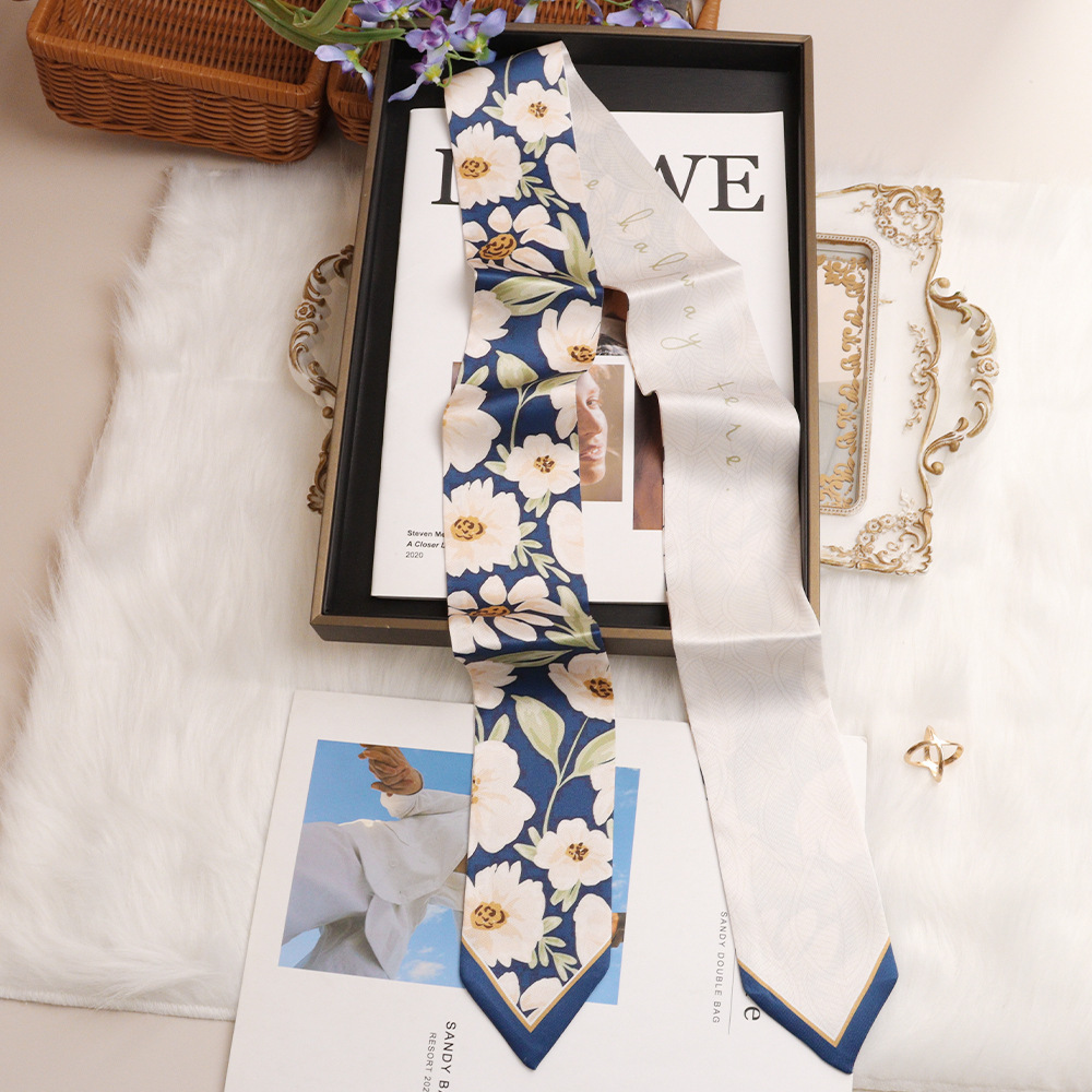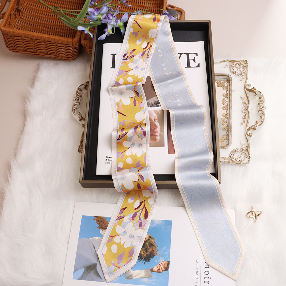 고급스러운 프랑스풍 인조 실크 장식 리본, 한국식 머리 묶는 긴 스카프, 여성용 명품 헤어밴드, 머리 땋기용 스카프