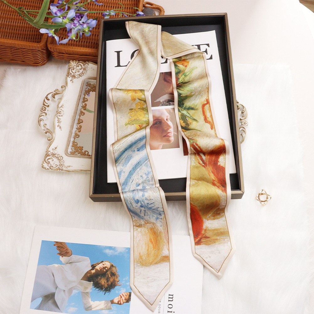 고급스러운 프랑스풍 인조 실크 장식 리본, 한국식 머리 묶는 긴 스카프, 여성용 명품 헤어밴드, 머리 땋기용 스카프스토어 가기