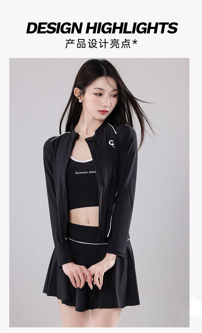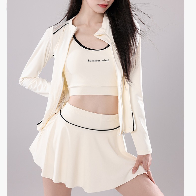 여성용 잠수복 지퍼 수영복, 긴팔 바지, 스커트가 있는 자외선 차단, 보수적이고 슬림하며 배를 덮는 3피스 서핑 해파리 슈트