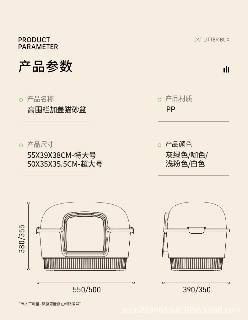 产品名称:高围栏封闭式猫砂盆