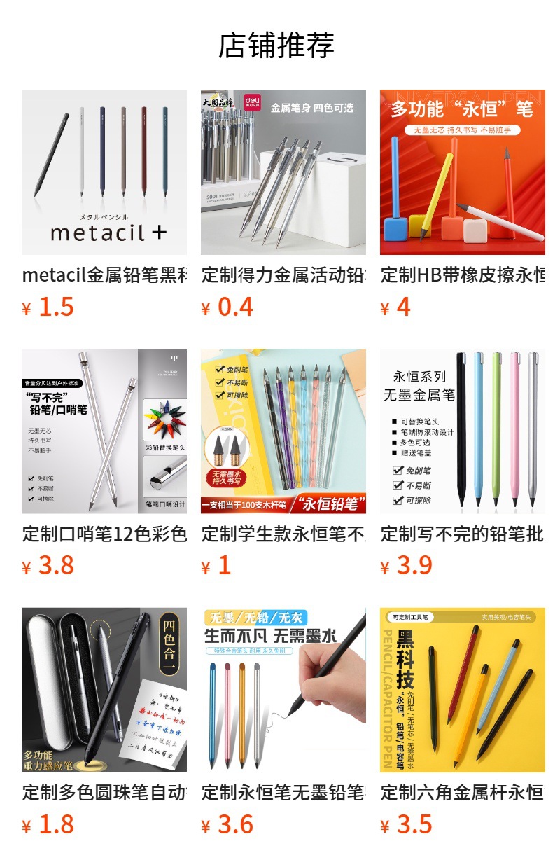 맞춤형 메타실 금속 연필, 블랙 테크놀로지, 영구 연필, 내구성, 깎을 필요 없는 합금, 쓰기 끝나지 않는 펜스토어 가기