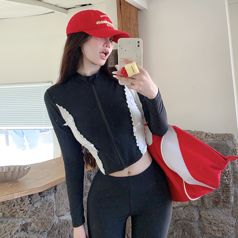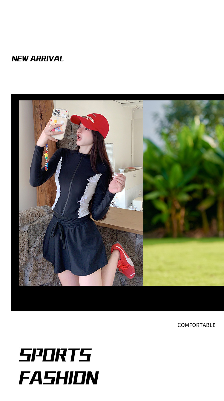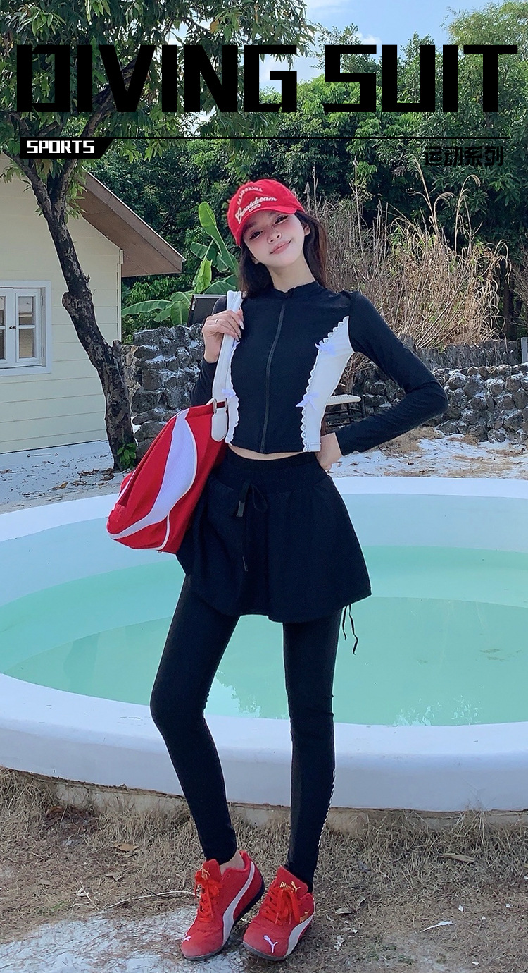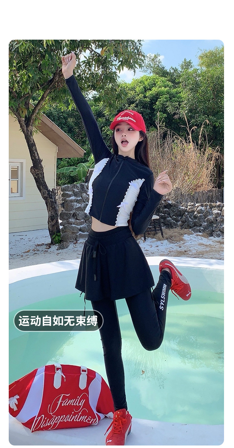 한국 스타일 스포츠 긴팔 속건성 슬리밍 스플릿 스커트 4피스 수영복 여성용 서핑 및 스노클링 잠수복스토어 가기