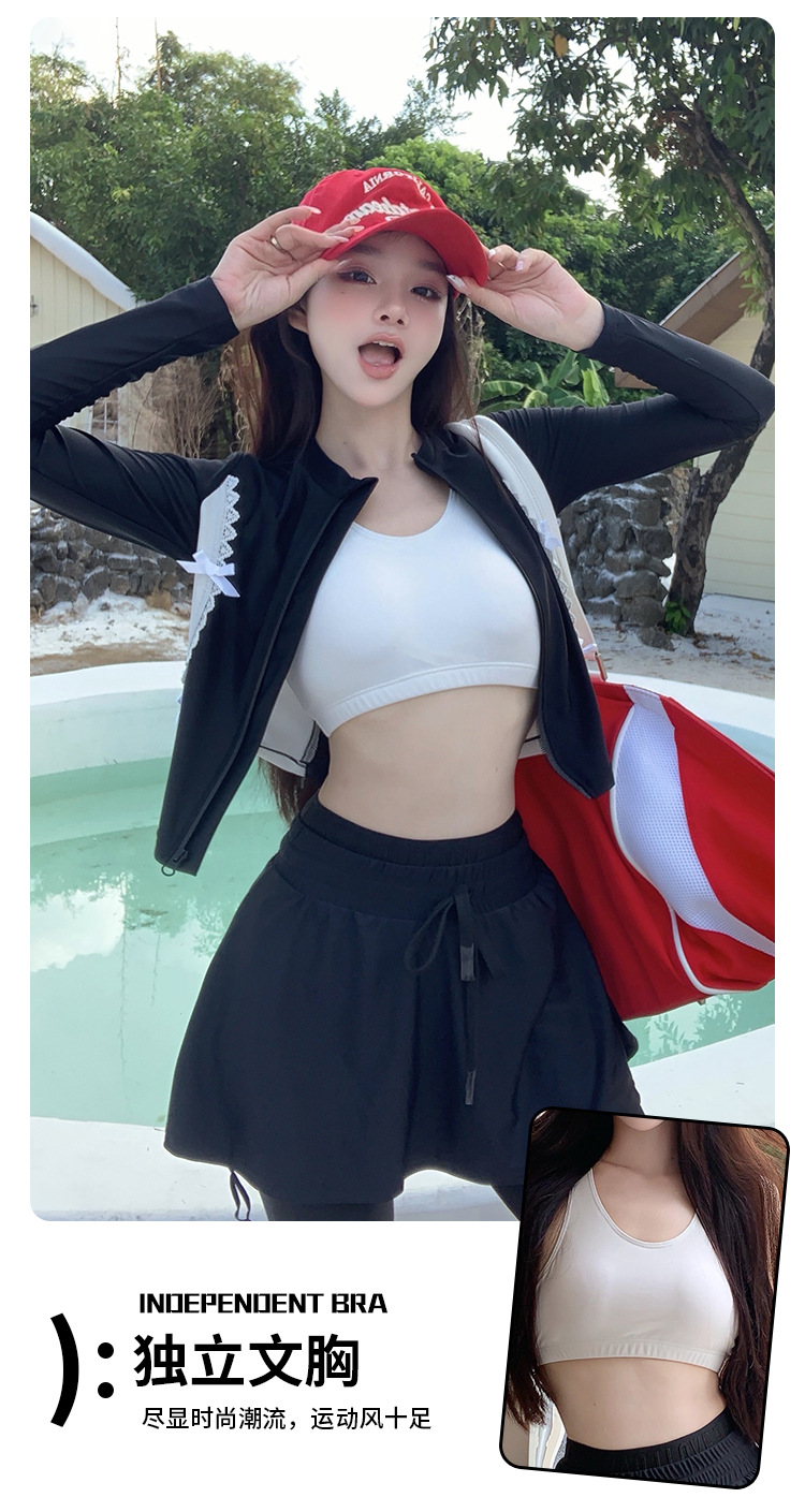 한국 스타일 스포츠 긴팔 속건성 슬리밍 스플릿 스커트 4피스 수영복 여성용 서핑 및 스노클링 잠수복