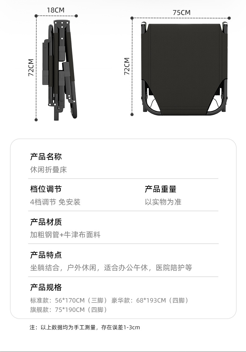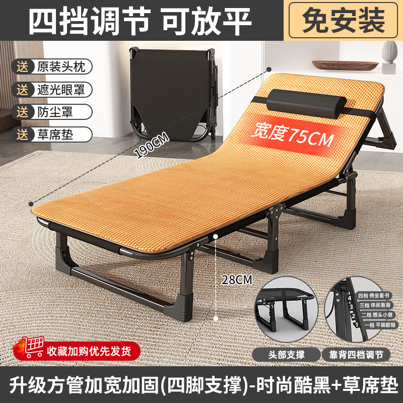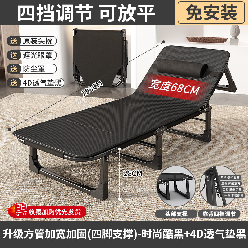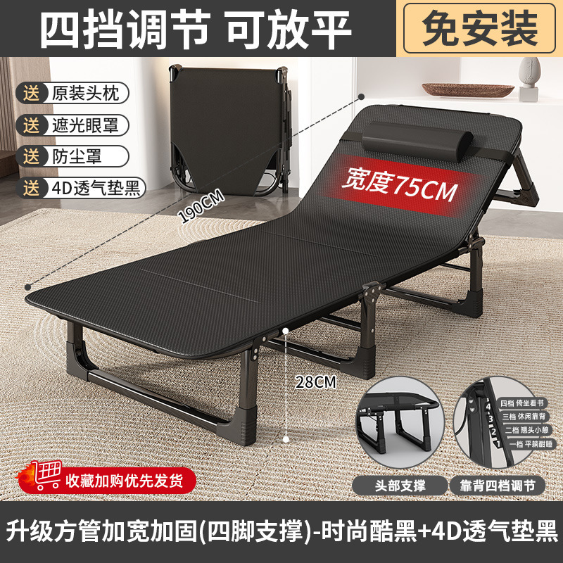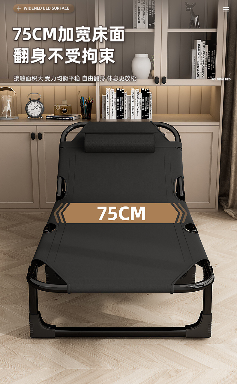 접이식 침대 싱글 침대 가정용 휴대용 간단한 낮잠 침대 사무실 성인 낮잠 캠프 침대 다기능 안락 의자스토어 가기