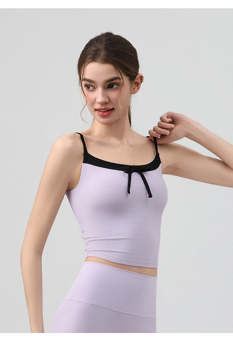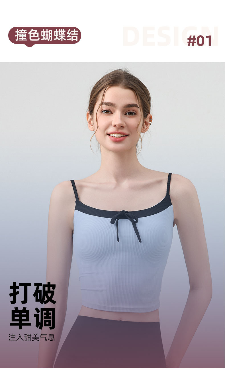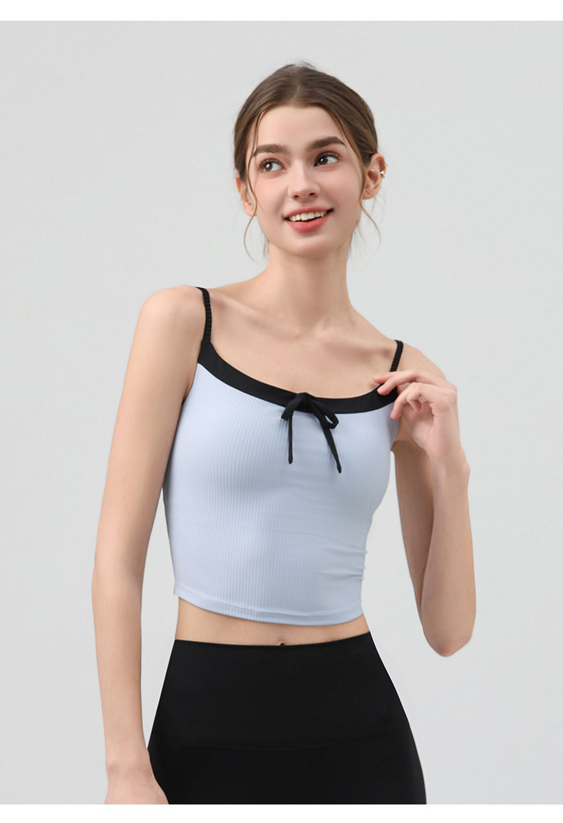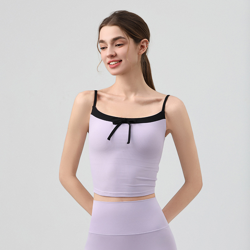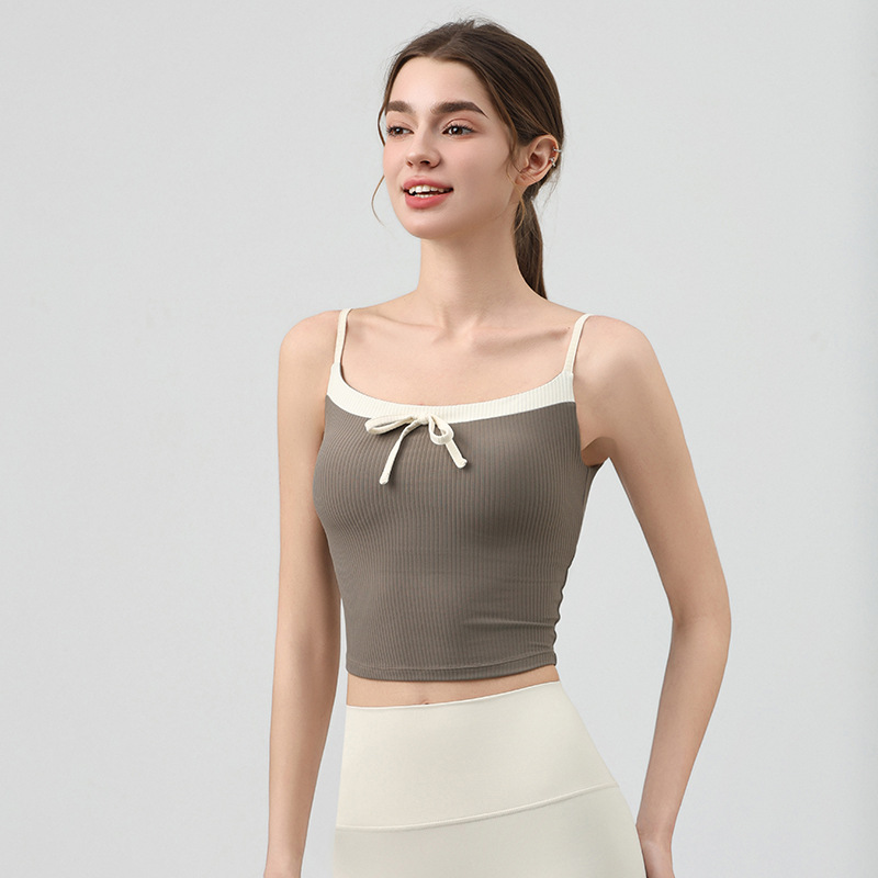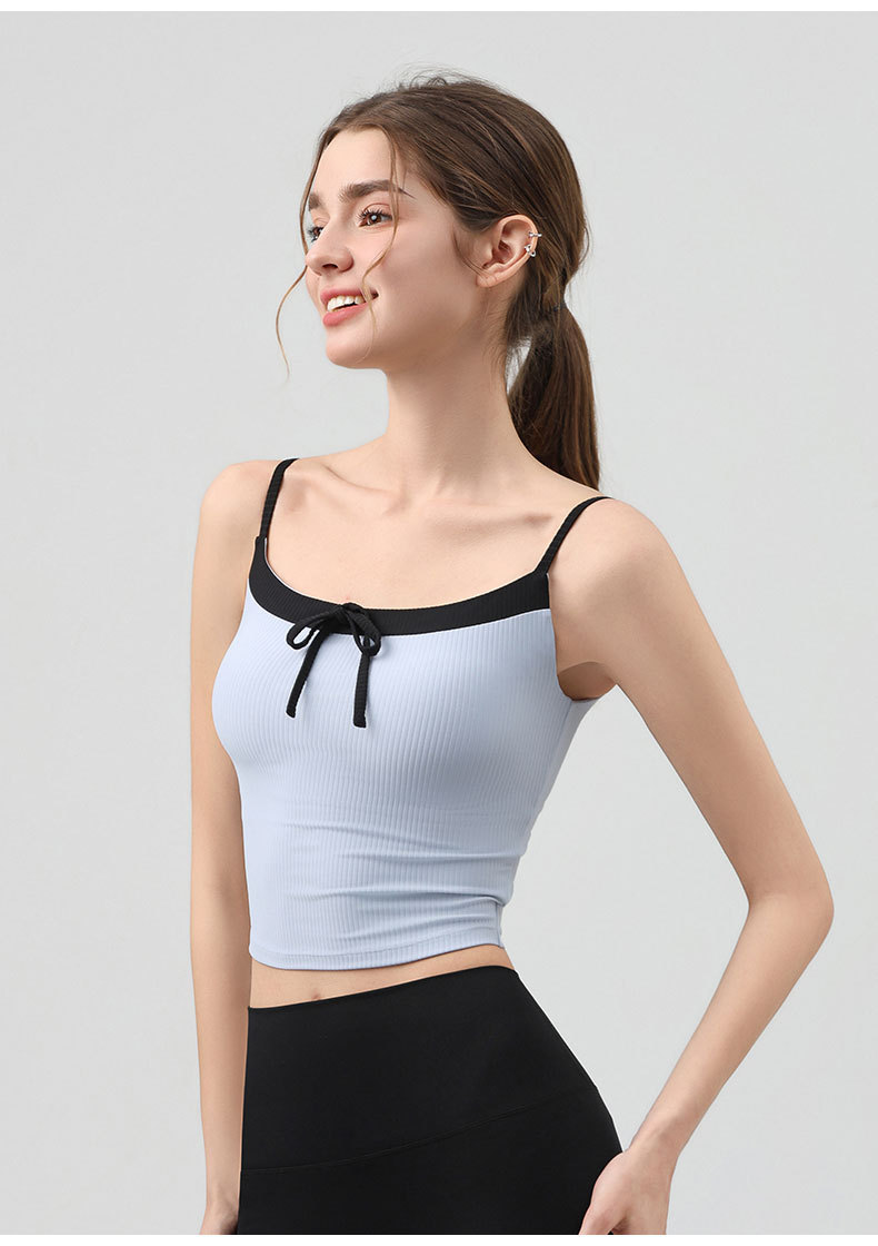 요가복, 니치 섹시 피트니스웨어, 레이스업 보우 스포츠 조끼, 가슴 패드가 있는 슬링 탑, 스포츠 속옷스토어 가기