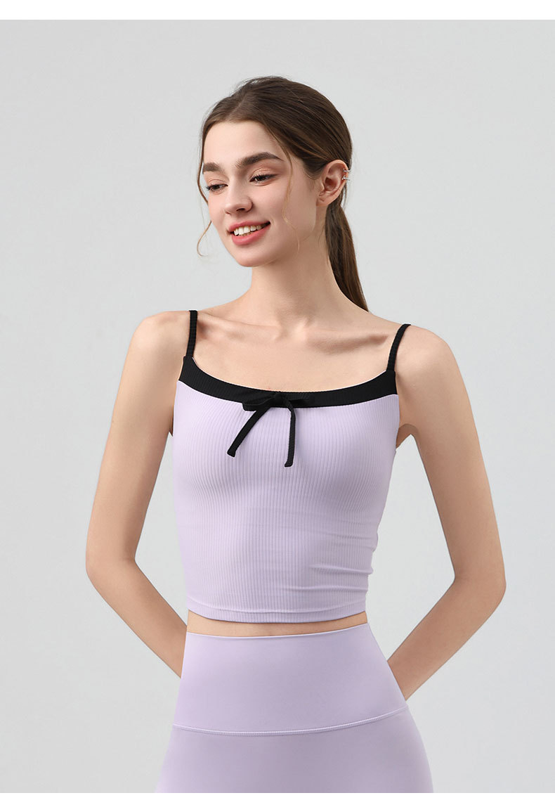 요가복, 니치 섹시 피트니스웨어, 레이스업 보우 스포츠 조끼, 가슴 패드가 있는 슬링 탑, 스포츠 속옷
