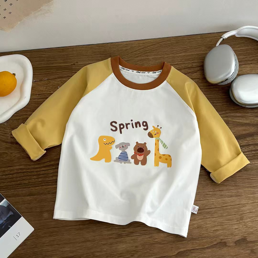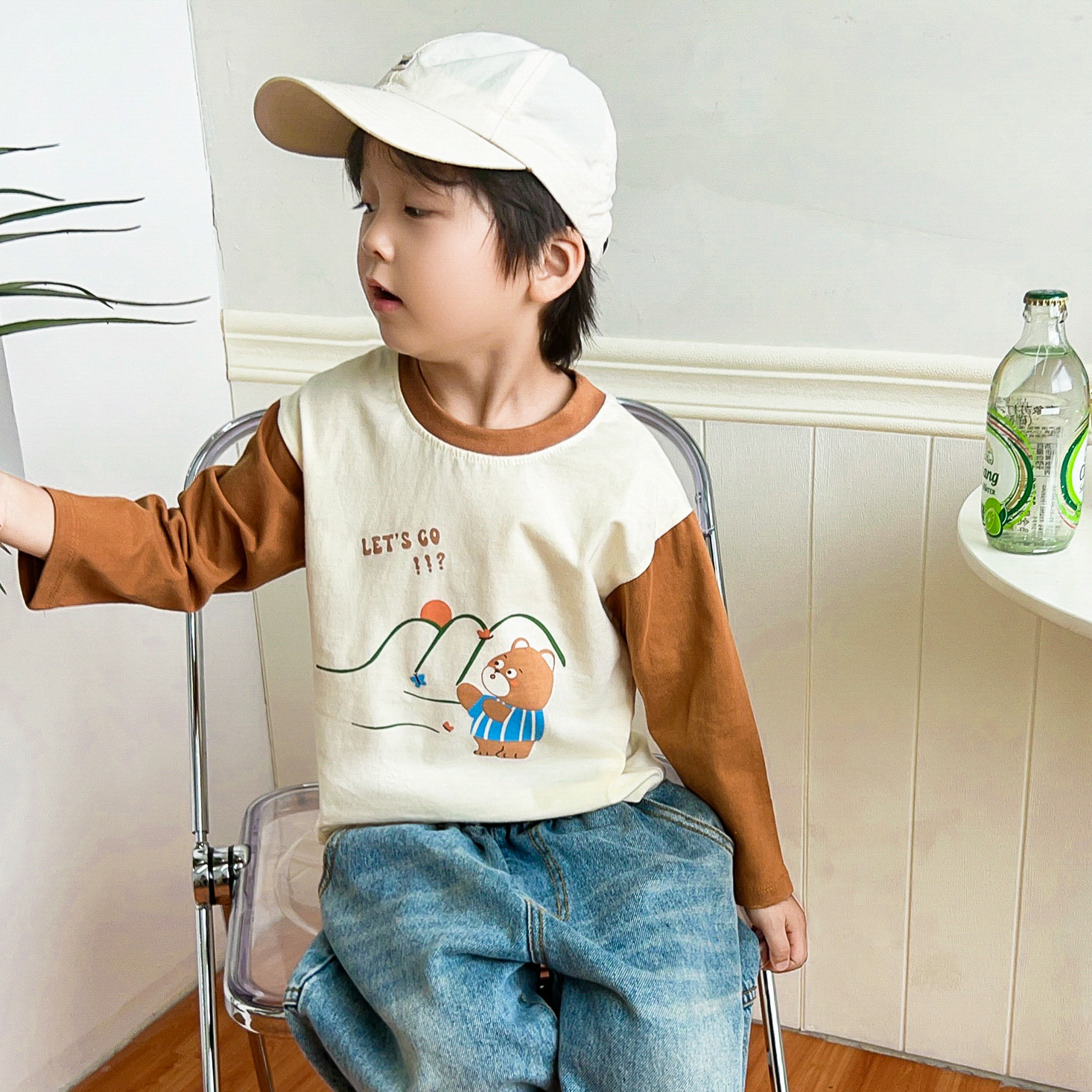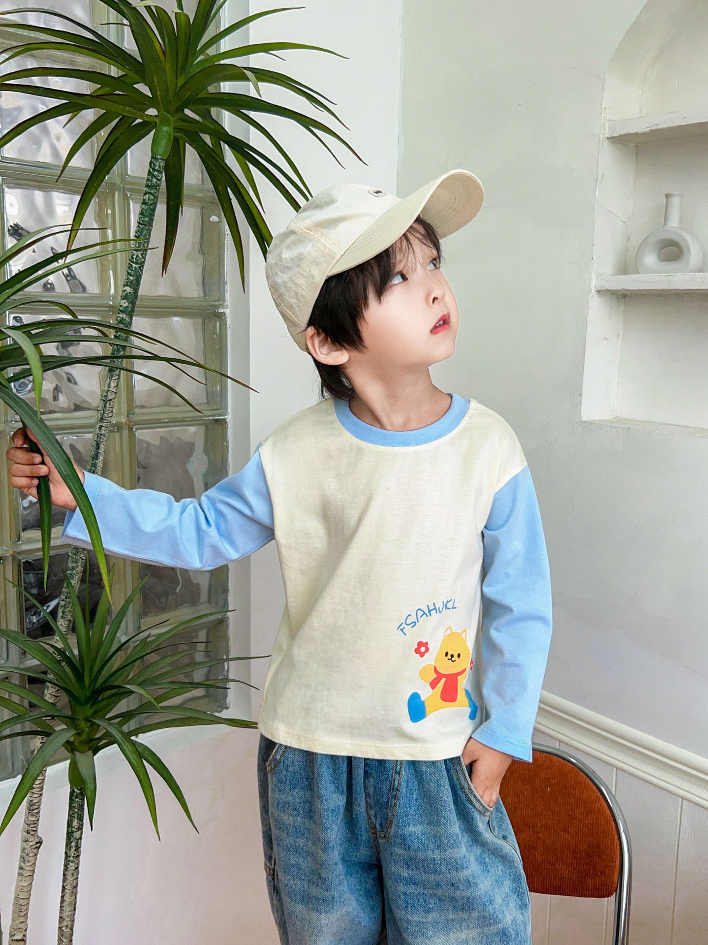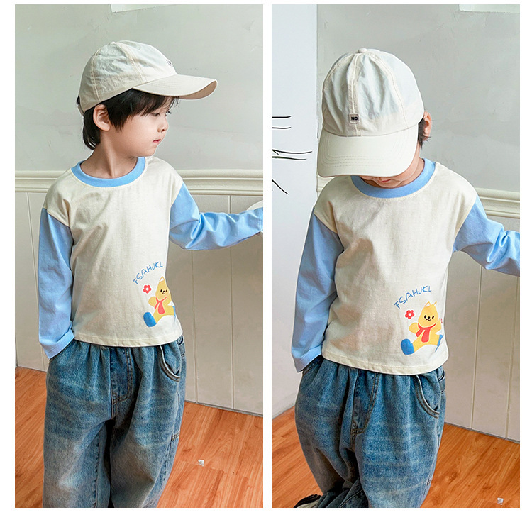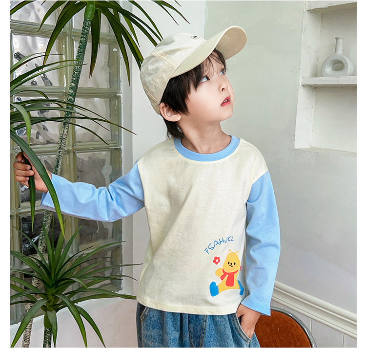 어린이 순면 티셔츠 소녀 소년 탑 긴팔 싱글 피스 베이비 카테고리 A 면 100% 래글런 슬리브 스플 라이스 바닥 셔츠스토어 가기