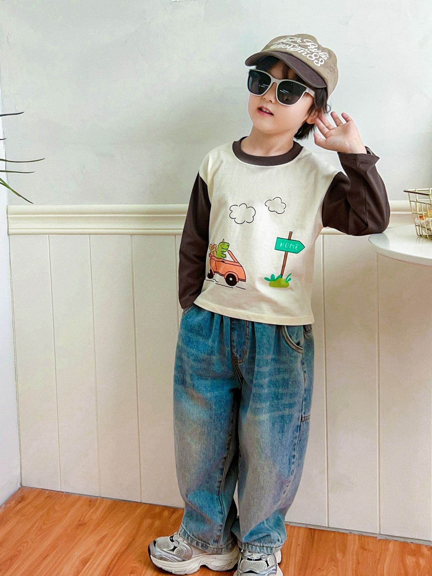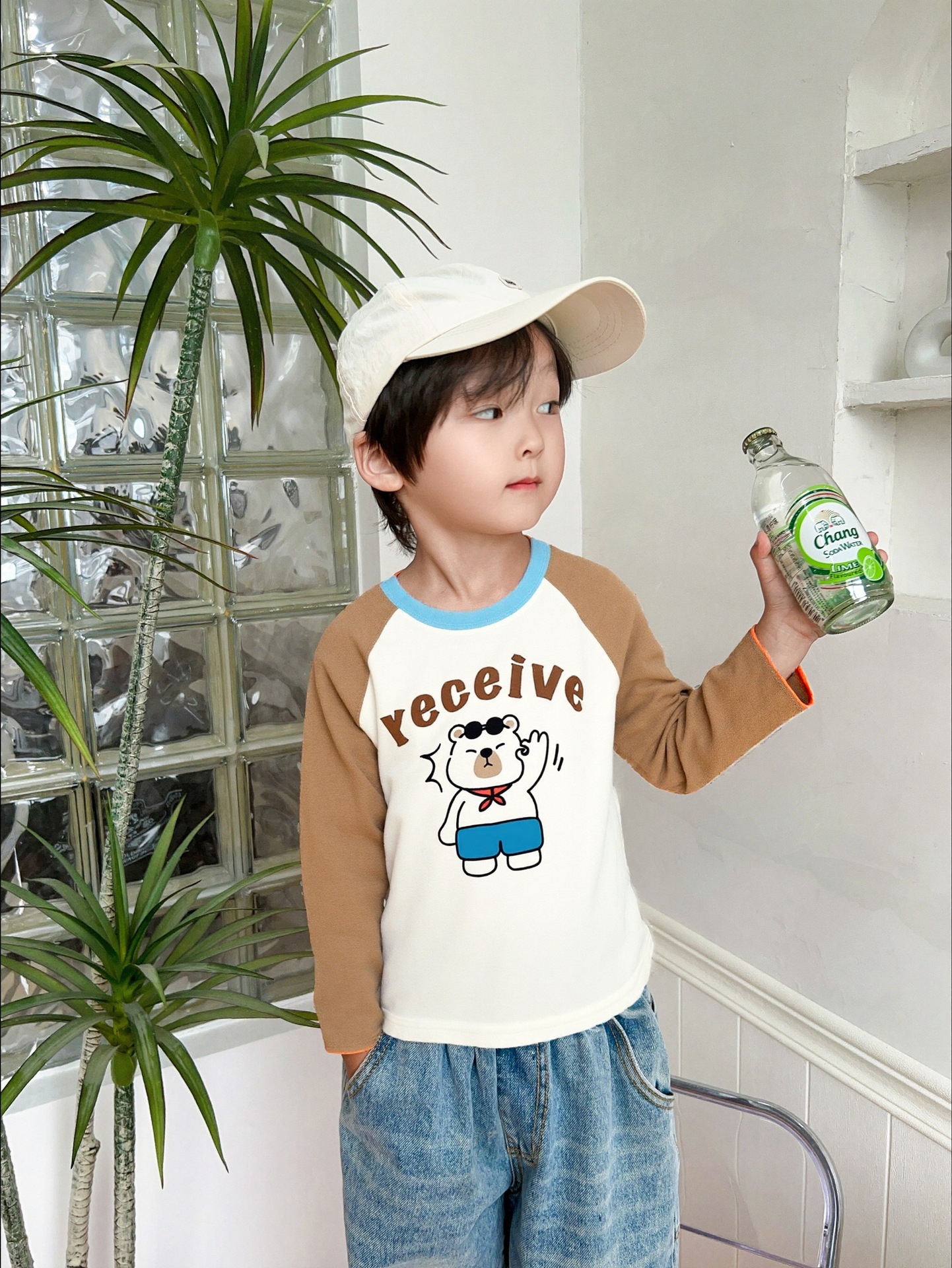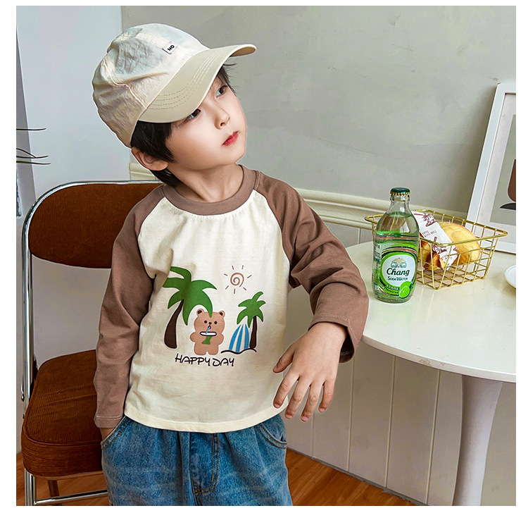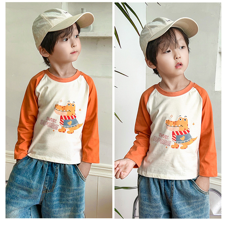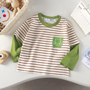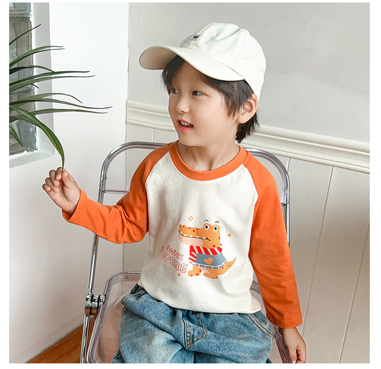 어린이 순면 티셔츠 소녀 소년 탑 긴팔 싱글 피스 베이비 카테고리 A 면 100% 래글런 슬리브 스플 라이스 바닥 셔츠스토어 가기