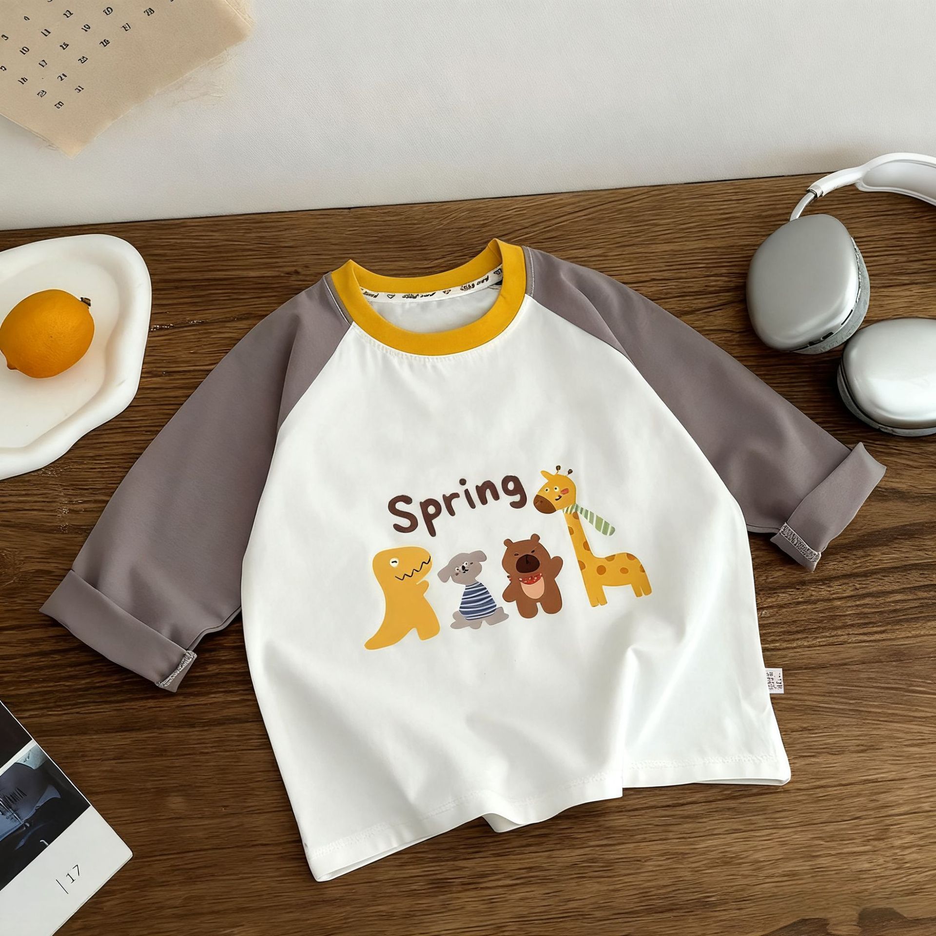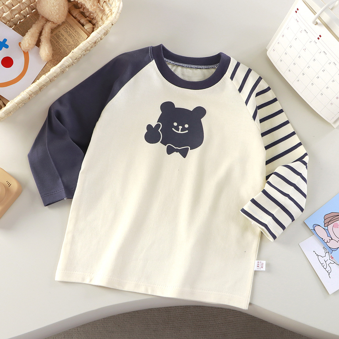 어린이 순면 티셔츠 소녀 소년 탑 긴팔 싱글 피스 베이비 카테고리 A 면 100% 래글런 슬리브 스플 라이스 바닥 셔츠