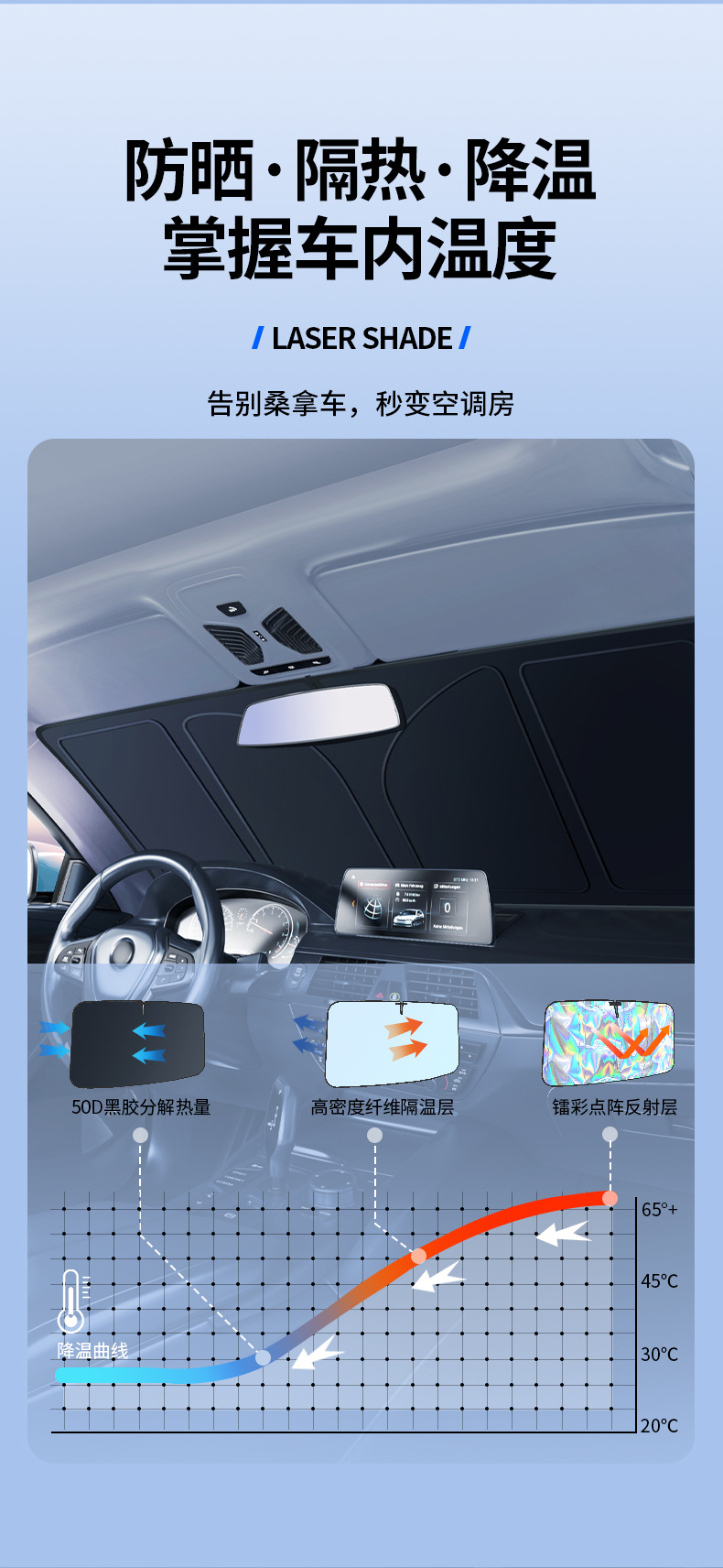 새로운 60% off 겹 자동차 레이저 차양, 자외선 차단, 단열 및 차광 커튼, 자동차 앞 유리판 커버