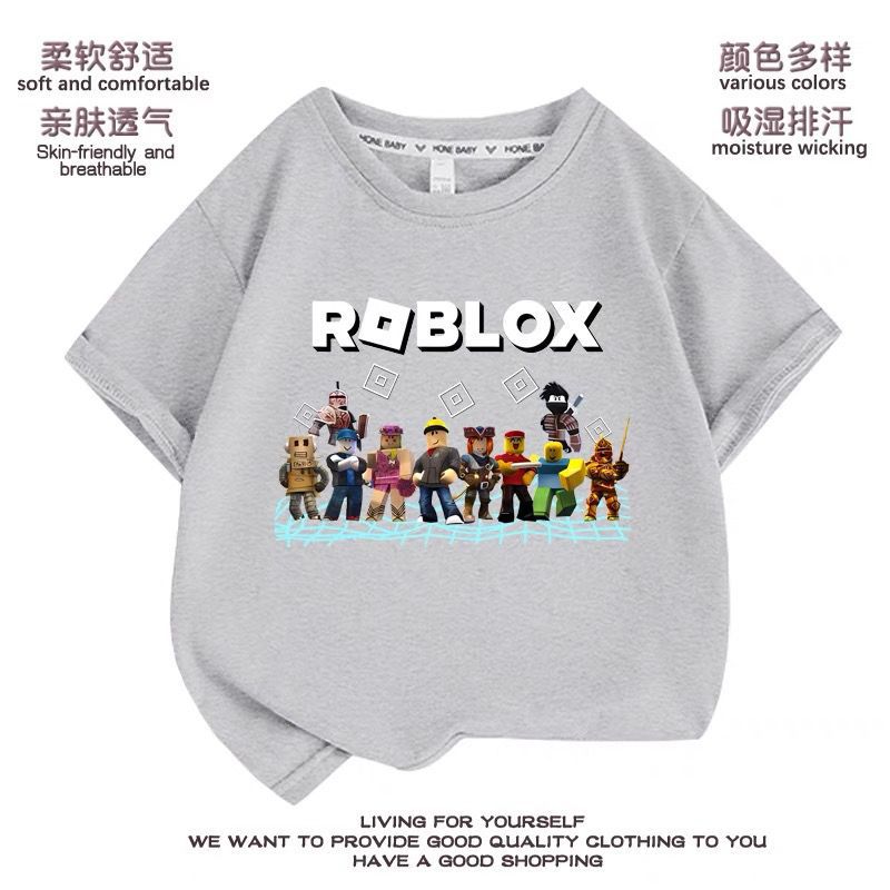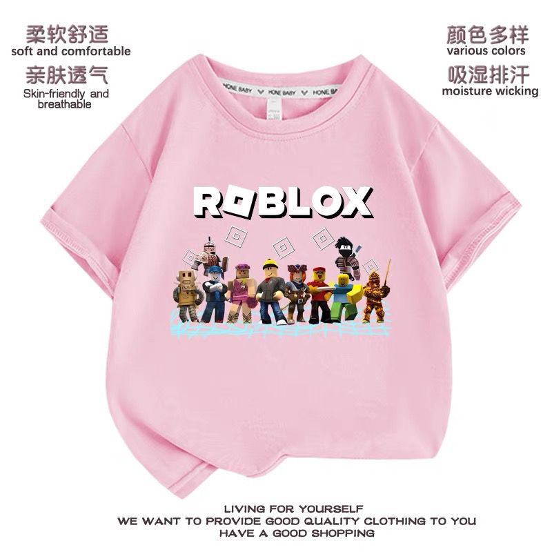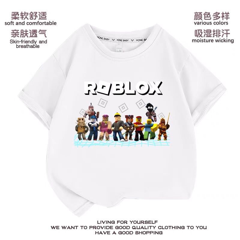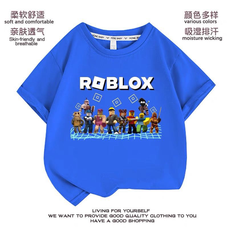 Roblox 아동 의류 아동 여름 순수 코튼 반팔 티셔츠 소년 바닥 셔츠 슬리브 탑 여름 얇은 옷스토어 가기