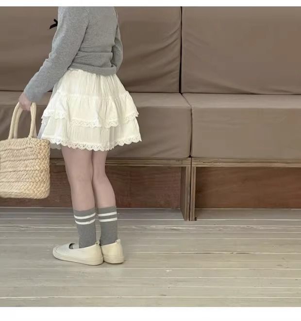 여자 스커트 여름 새 스타일 화이트 케이크 스커트 짧은 주름 a 라인 스커트 안전 바지가있는 주름 스커트