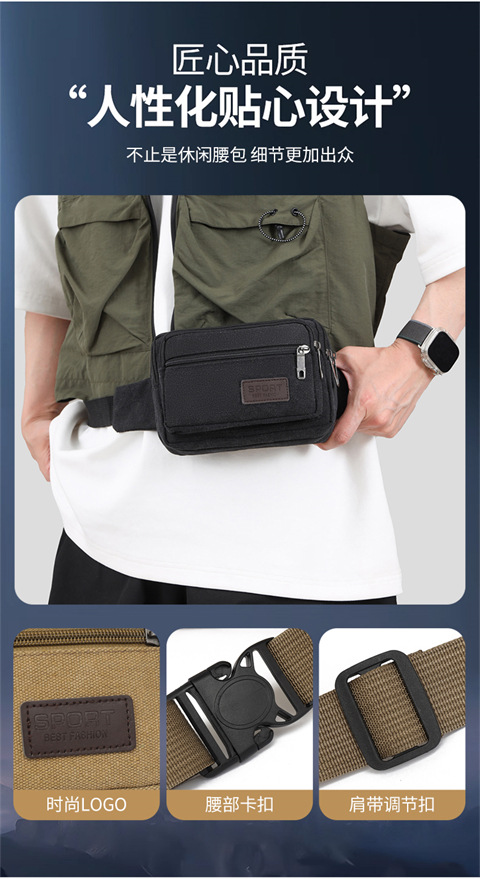 남성의 새로운 야외 러닝 백 대형 용량 조절 가능한 어깨 크로스 바디 허리 가방 샌드위치 지퍼
