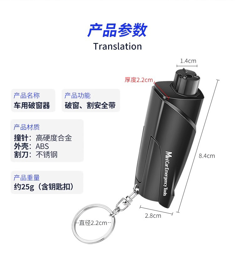 자동차 안전 망치, 커터가 있는 미니 차량, 차량 생명을 구하는 비상 창문 파괴기, 다기능 차량 탈출 망치