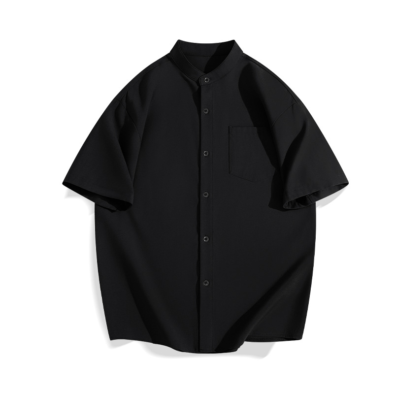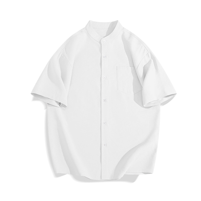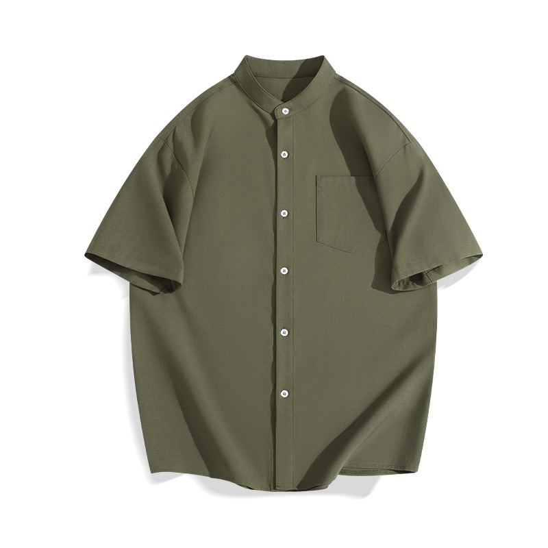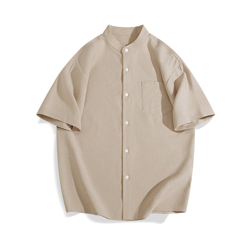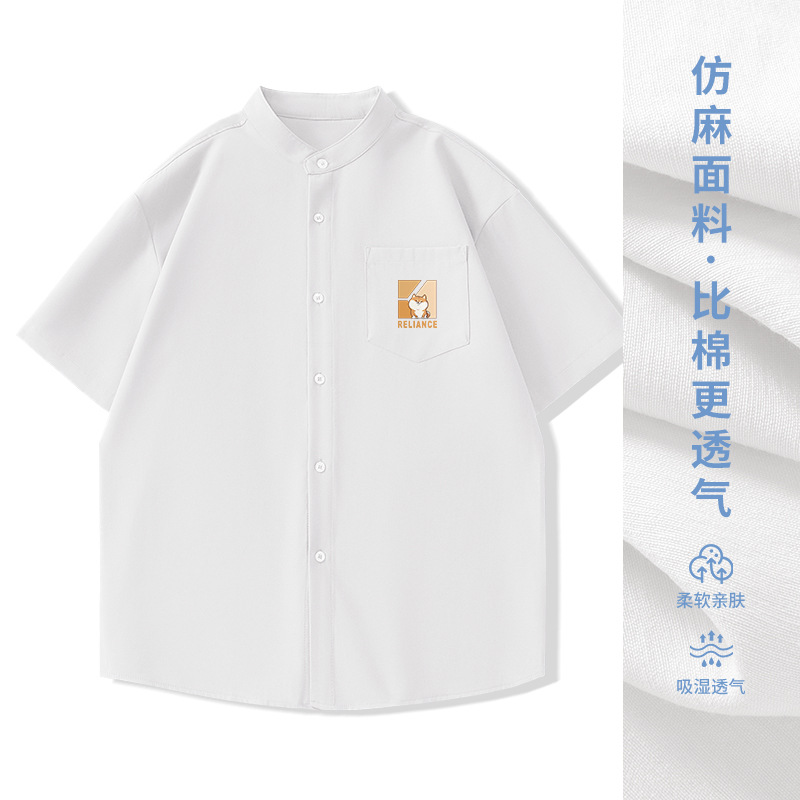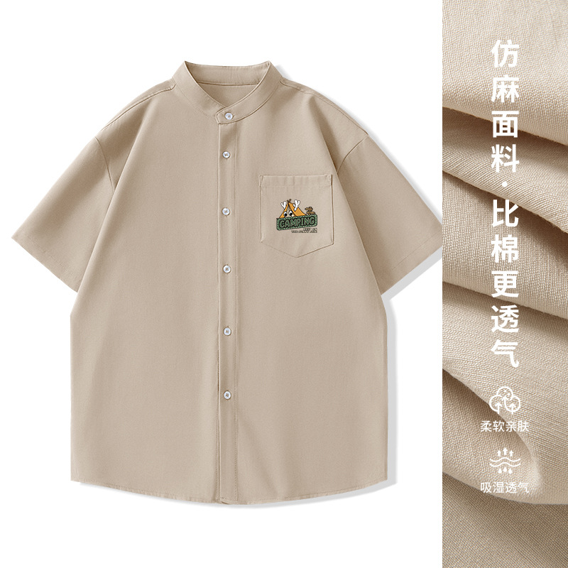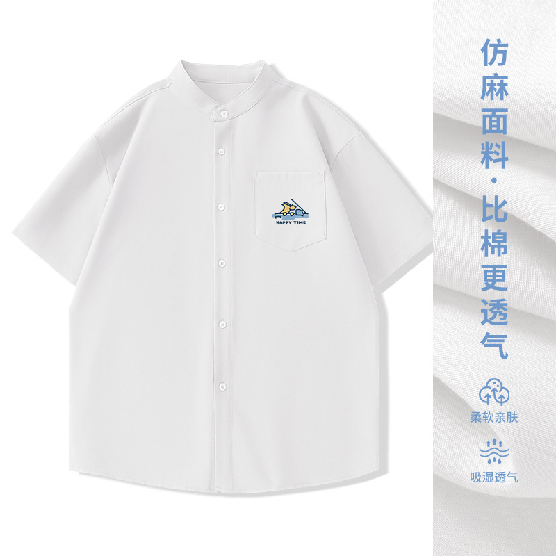 일본 복고풍 스탠드 칼라 반팔 셔츠 모조 린넨 캐주얼 재미 프린트 탑 여름 얇은 느슨한 남성 셔츠