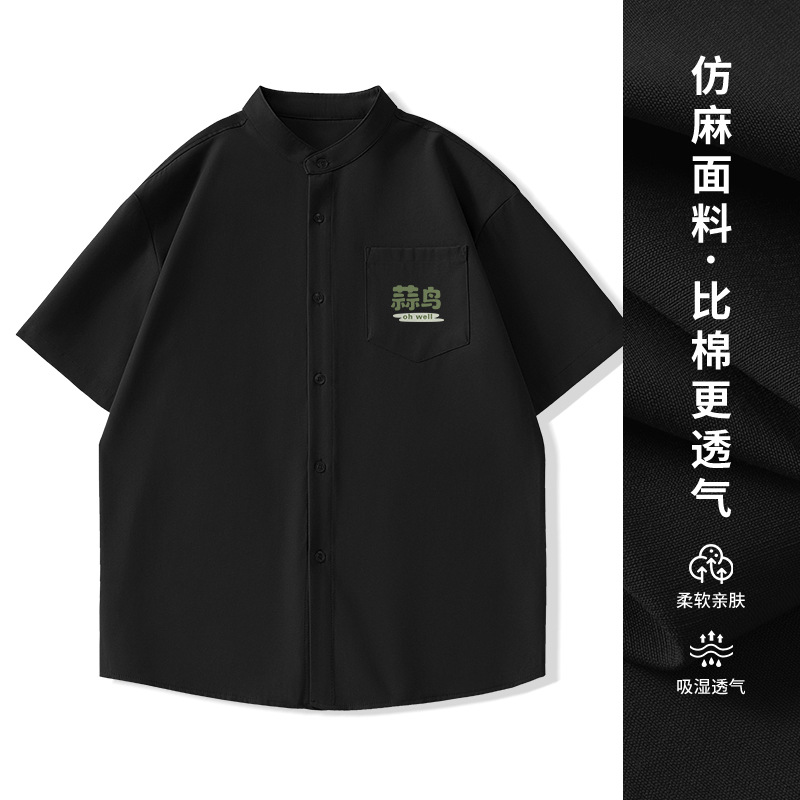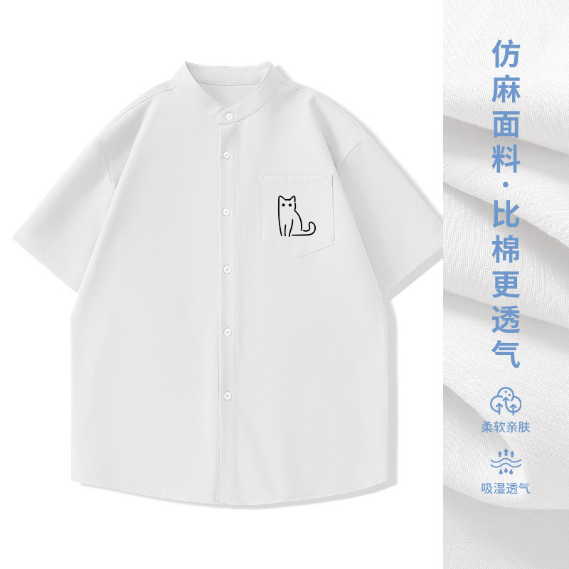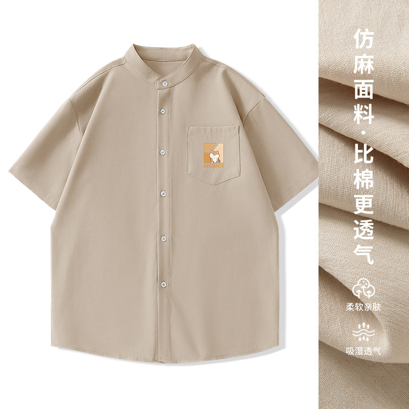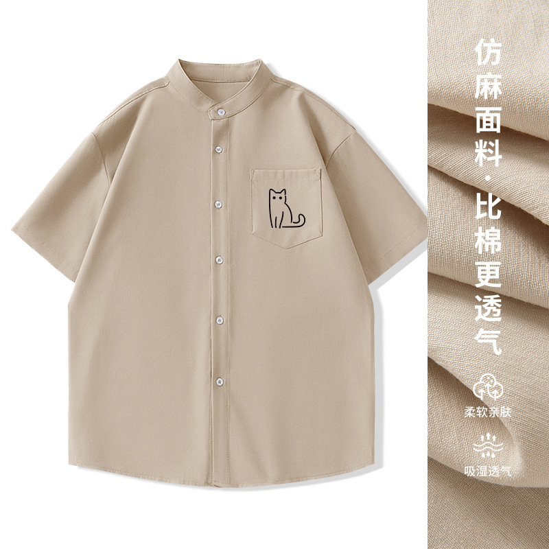 일본 복고풍 스탠드 칼라 반팔 셔츠 모조 린넨 캐주얼 재미 프린트 탑 여름 얇은 느슨한 남성 셔츠스토어 가기