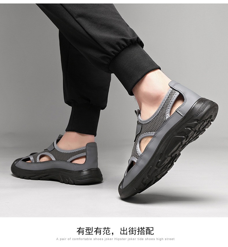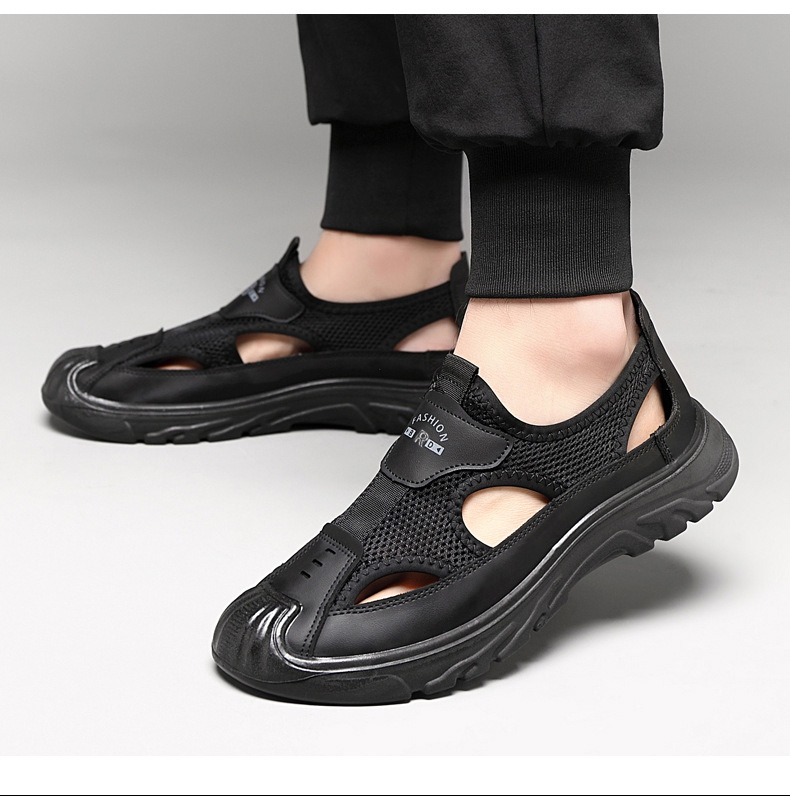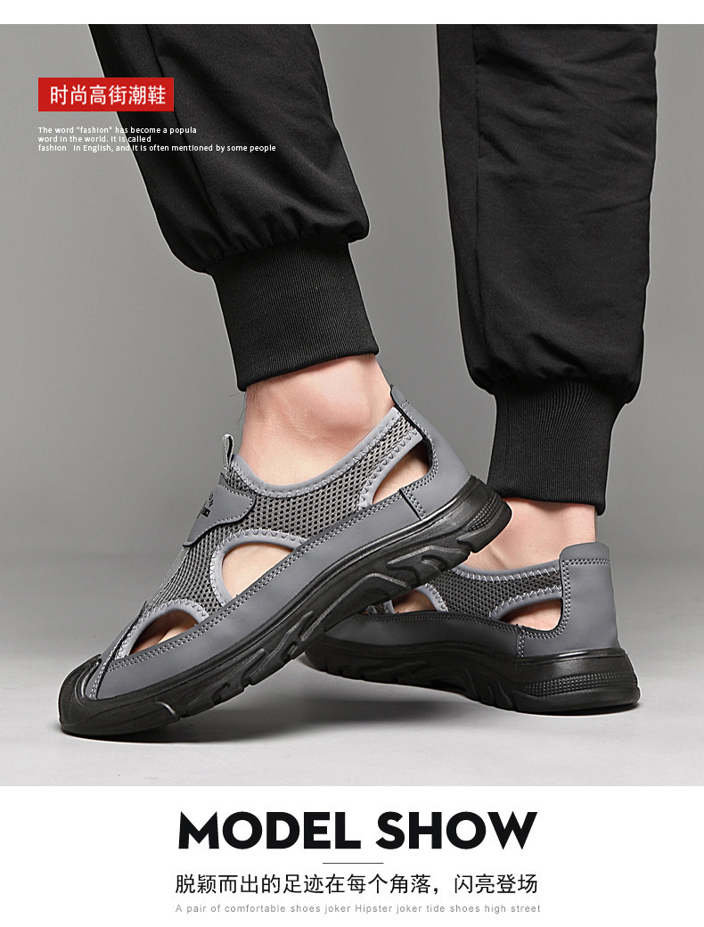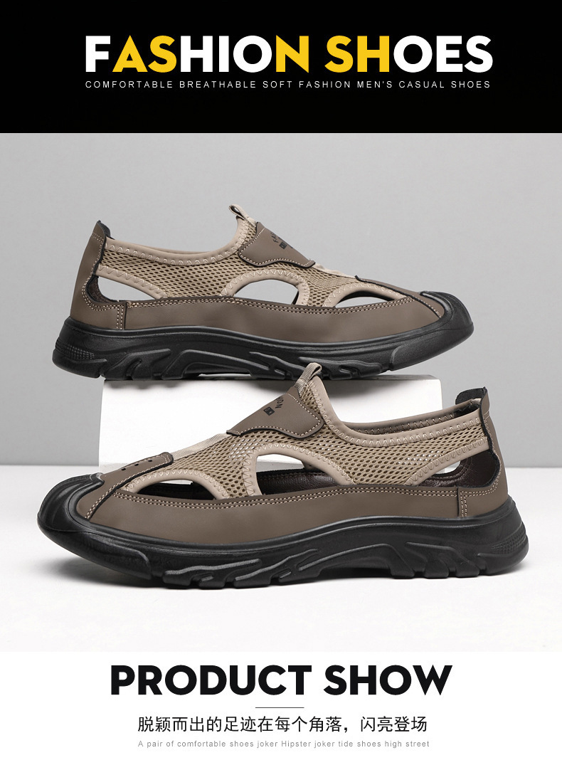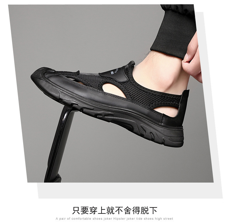 남성 여름 샌들 통기성 올 매치 캐주얼 슈즈 소프트 솔 야외 슈시 슈오 패션 할로우 메쉬 스포츠 남성 신발스토어 가기