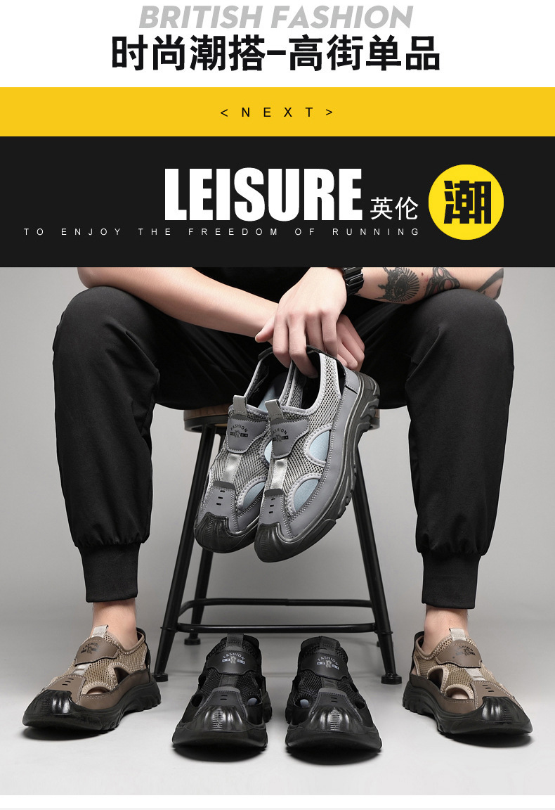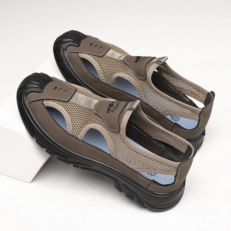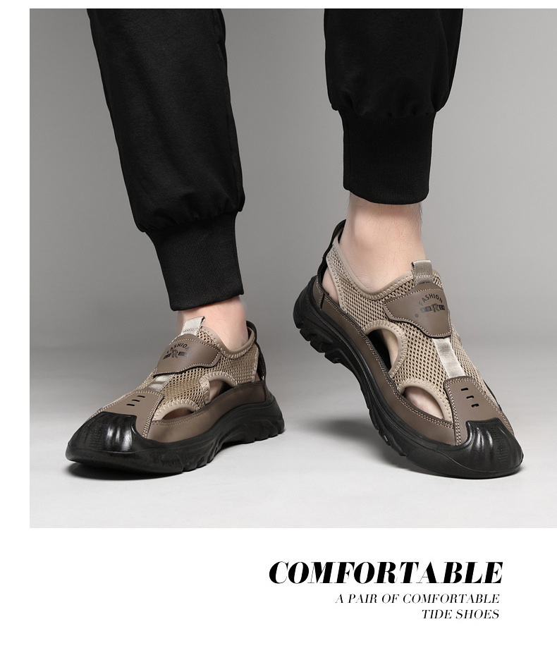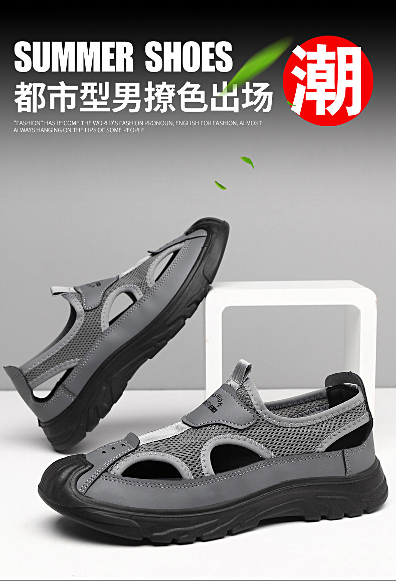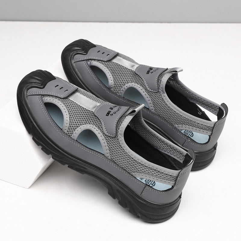 남성 여름 샌들 통기성 올 매치 캐주얼 슈즈 소프트 솔 야외 슈시 슈오 패션 할로우 메쉬 스포츠 남성 신발스토어 가기