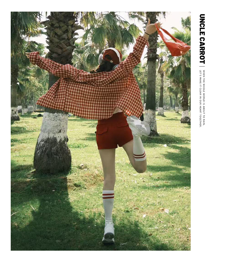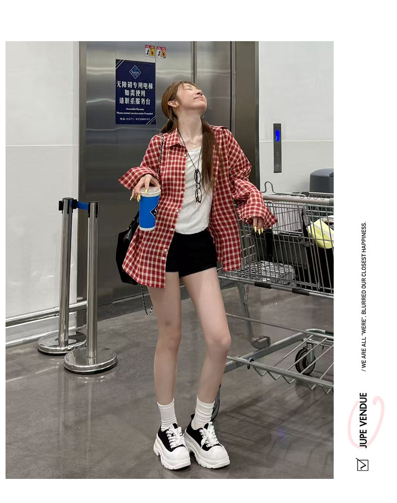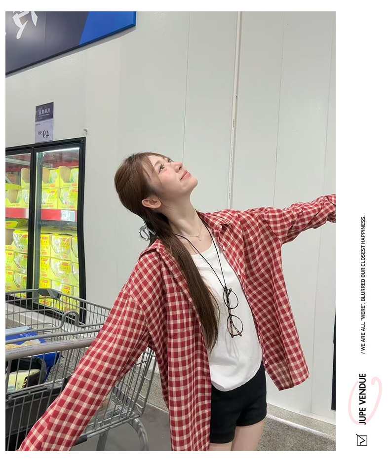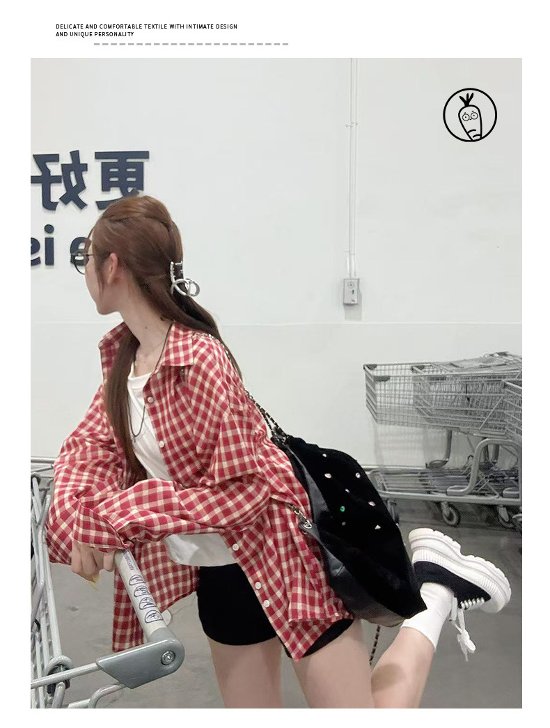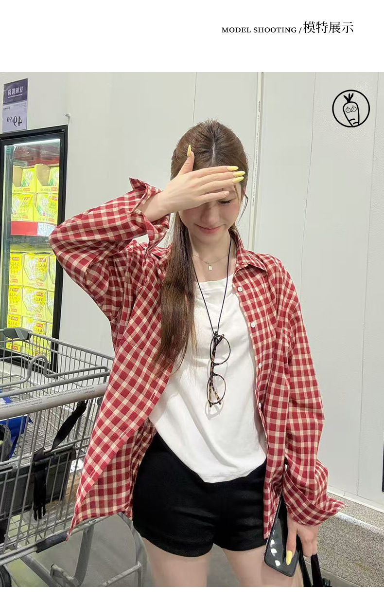 무 아저씨 빨간 격자 무늬 긴팔 셔츠 탑 여성의 여름 얇은 레트로 게으른 스타일 느슨한 태양 보호 재킷스토어 가기