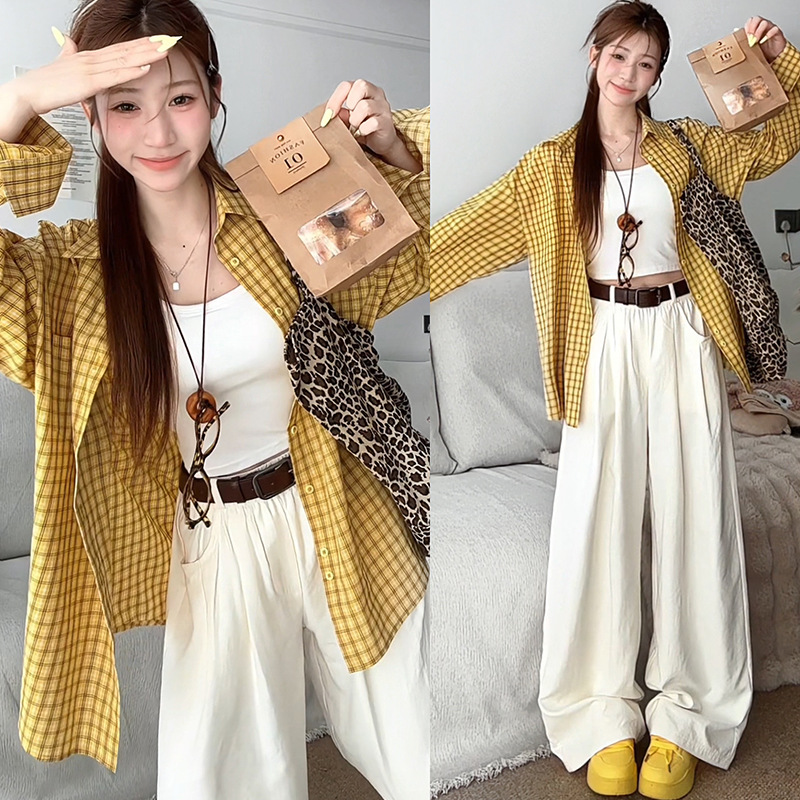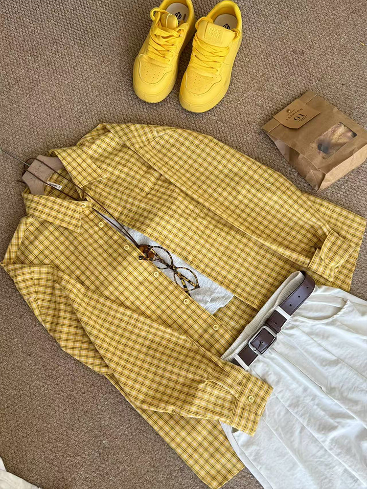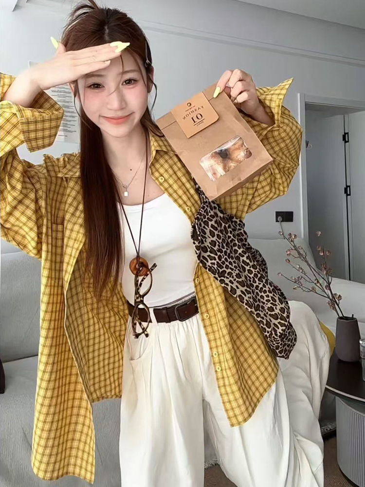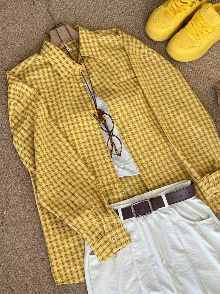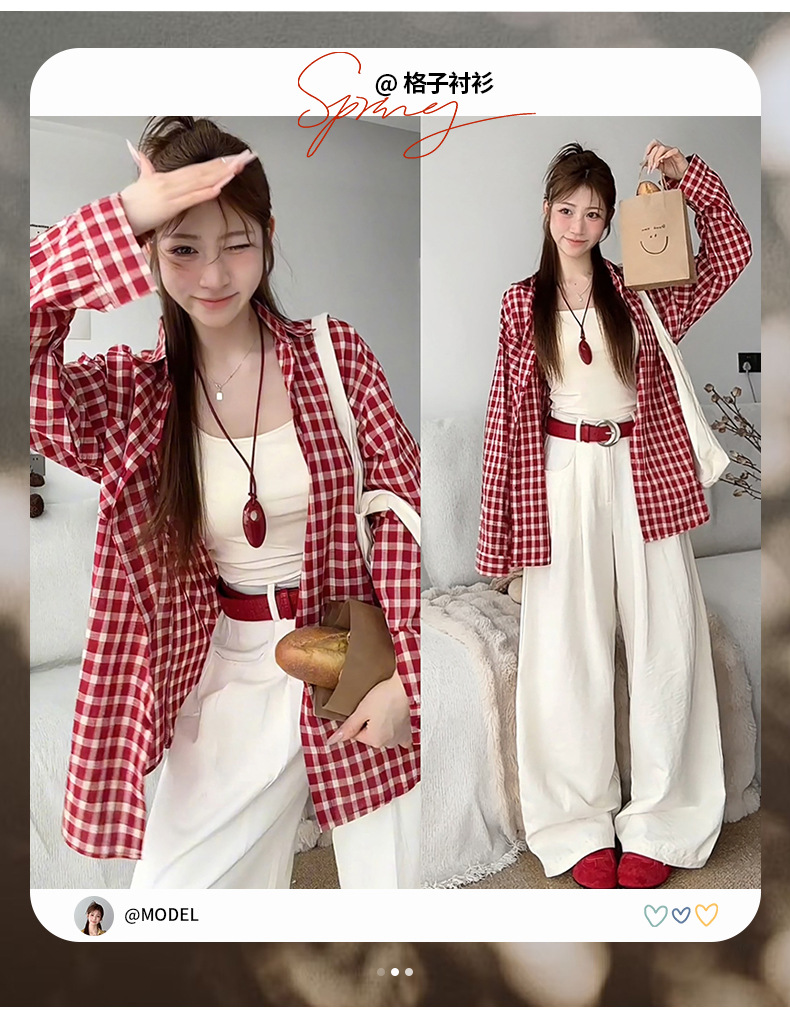 무 아저씨 빨간 격자 무늬 긴팔 셔츠 탑 여성의 여름 얇은 레트로 게으른 스타일 느슨한 태양 보호 재킷스토어 가기