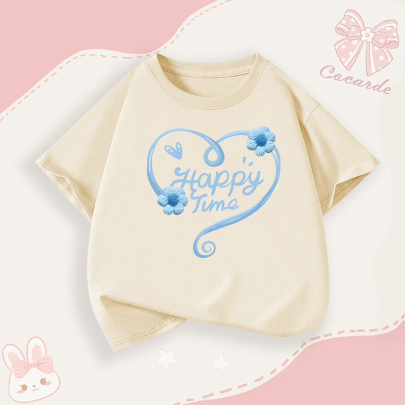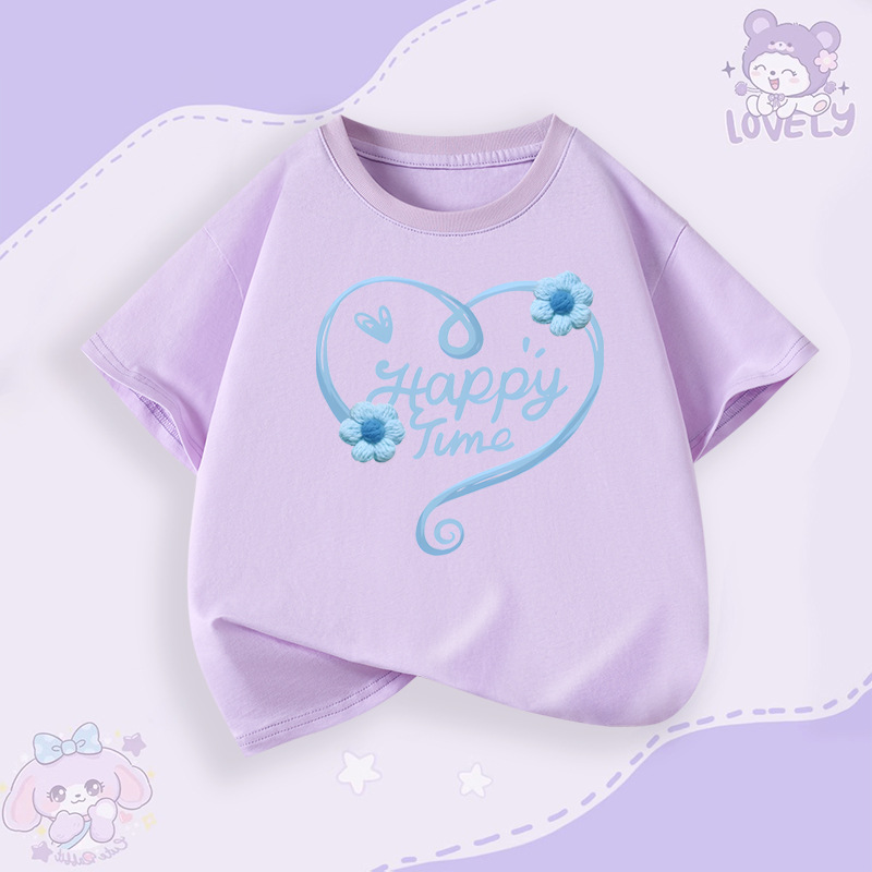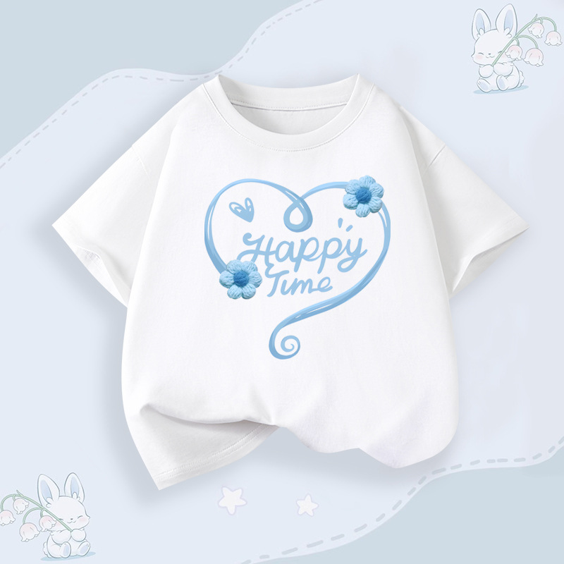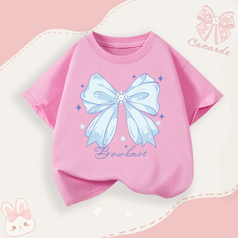 소녀 순면 반팔 티셔츠 패션 인쇄 활 패턴 어린이 여름 통기성 소녀 탑 아동 의류스토어 가기
