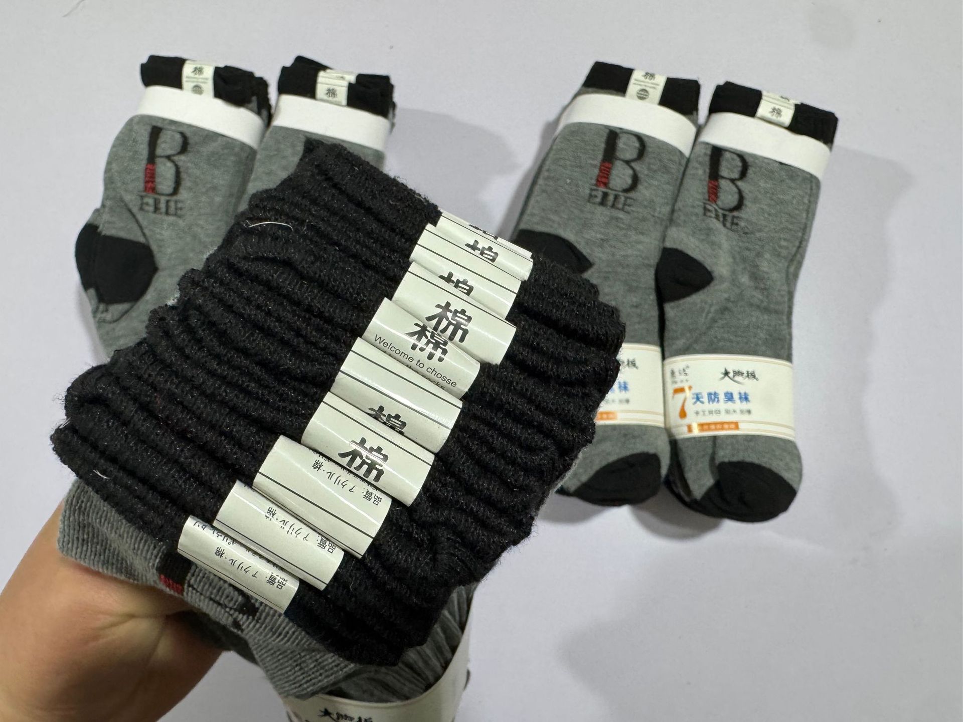 가을 겨울 면 양말, 큰 발 남성 양말, B자형 회색, 두꺼운 중년 및 노년층 노점 양말, 느슨한 양말, 도매 노점 양말스토어 가기