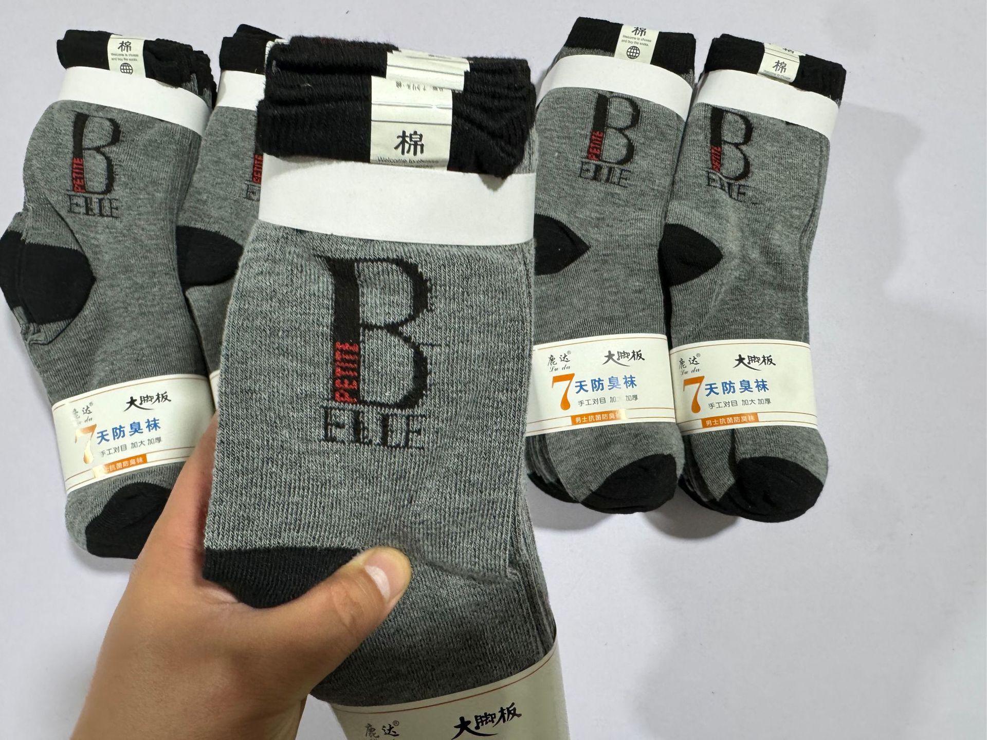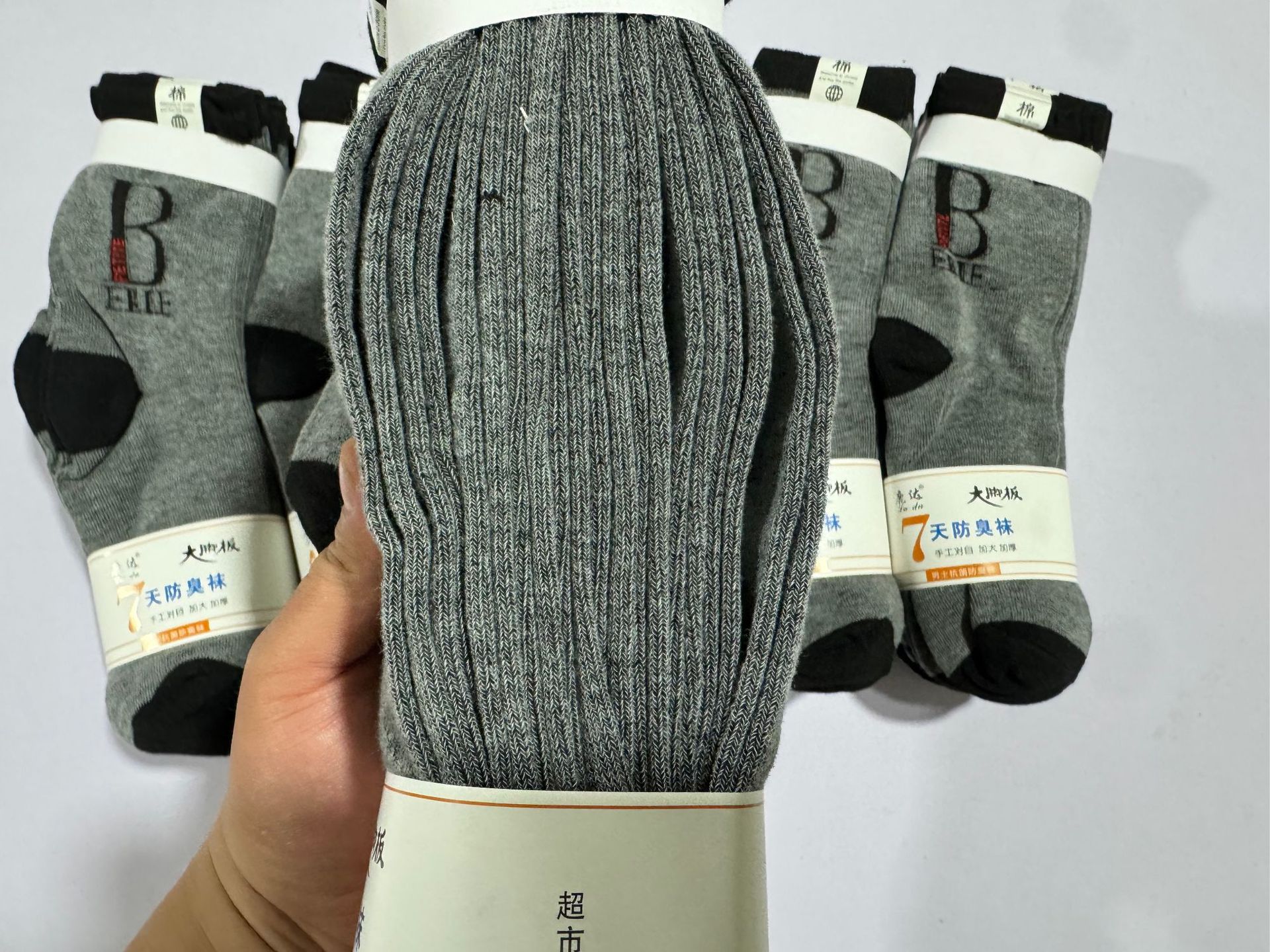 가을 겨울 면 양말, 큰 발 남성 양말, B자형 회색, 두꺼운 중년 및 노년층 노점 양말, 느슨한 양말, 도매 노점 양말