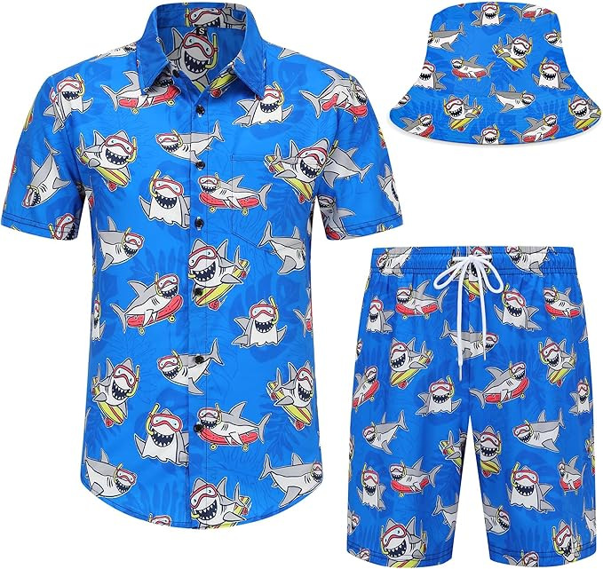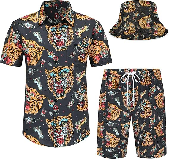 유럽 및 미국 스타일 셔츠 아마존 3D 프린팅 미니멀리스트 셔츠 티셔츠 반팔 반바지 비치 세트 남성용 통기성 항균