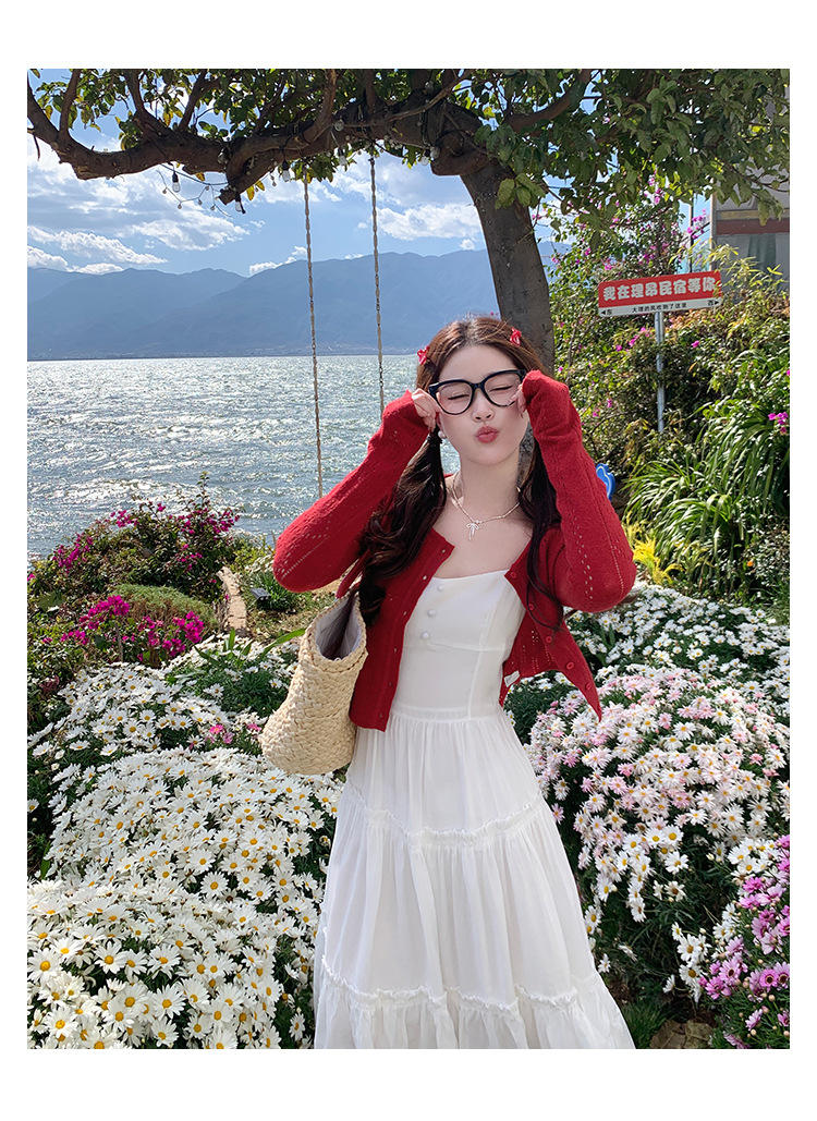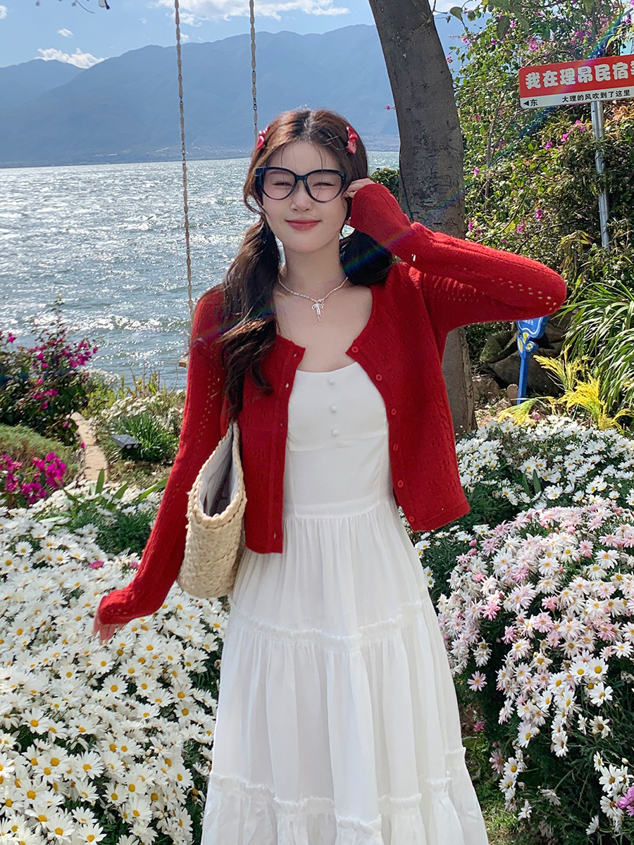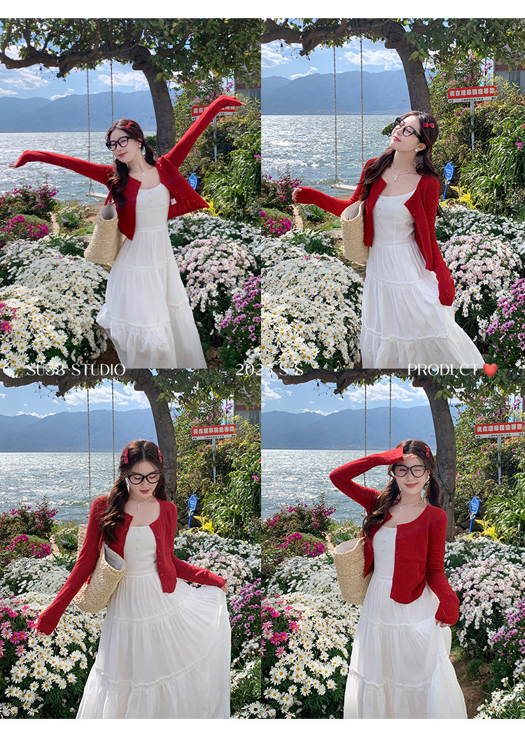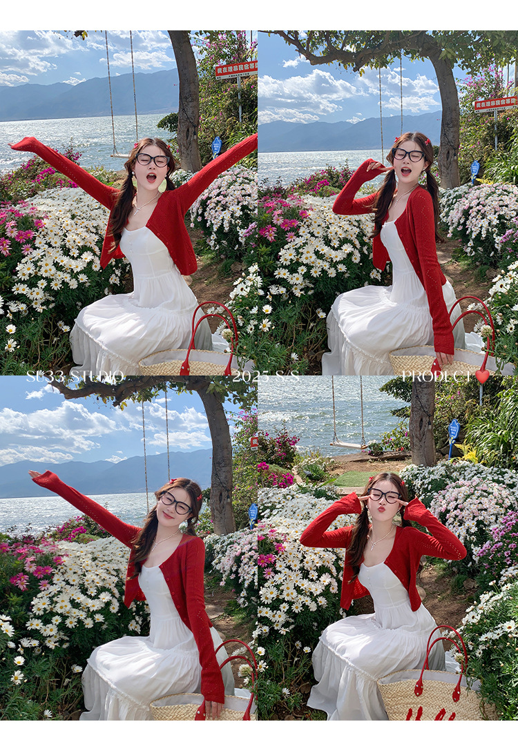 독특하고 아름다운 이른 봄 카디건 2025 새로운 슬링 아우터 스트랩 니트 코트 여성의 빨간 선 스크린 탑