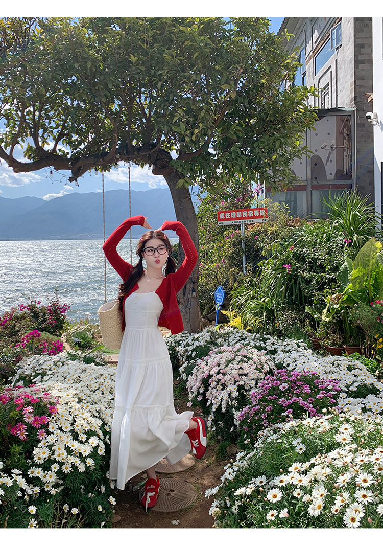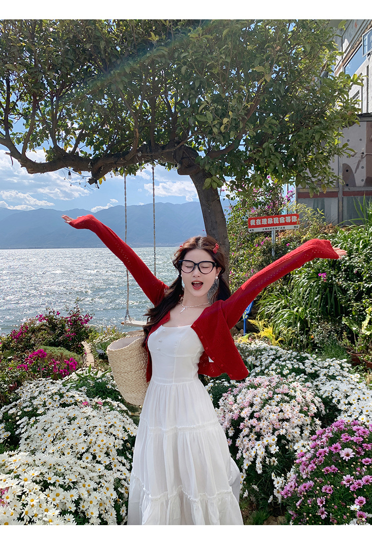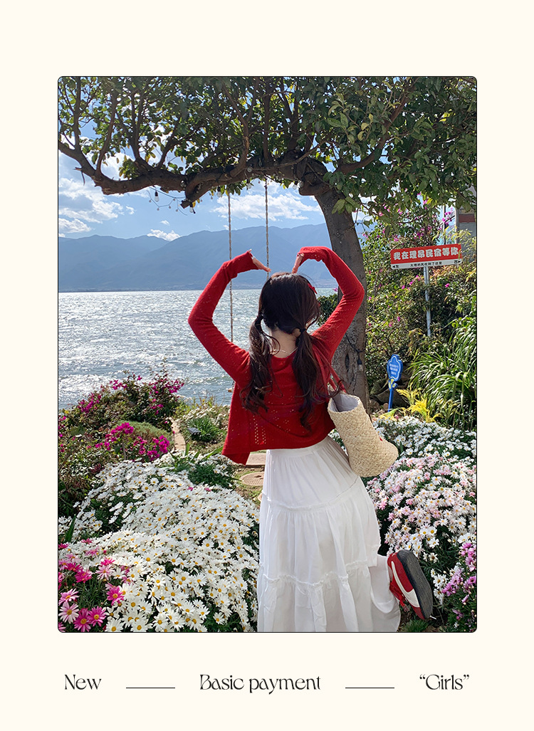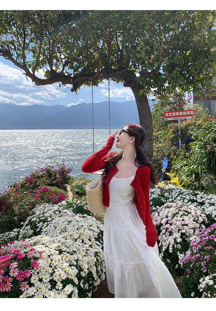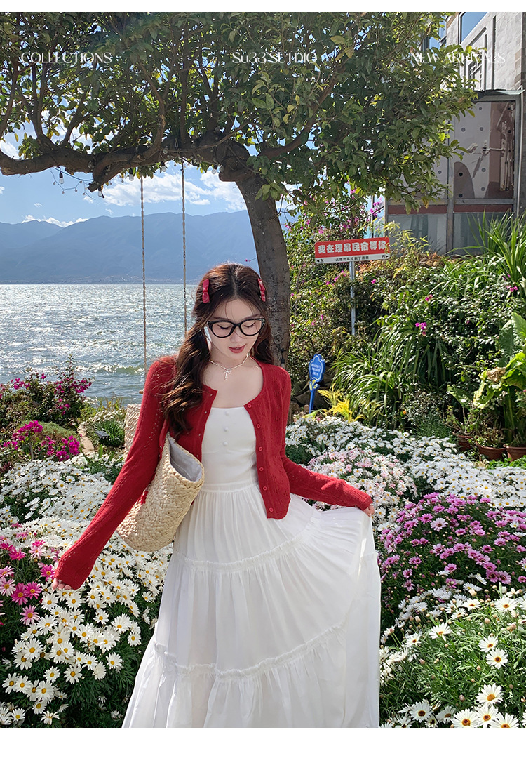 독특하고 아름다운 이른 봄 카디건 2025 새로운 슬링 아우터 스트랩 니트 코트 여성의 빨간 선 스크린 탑
