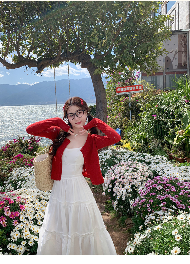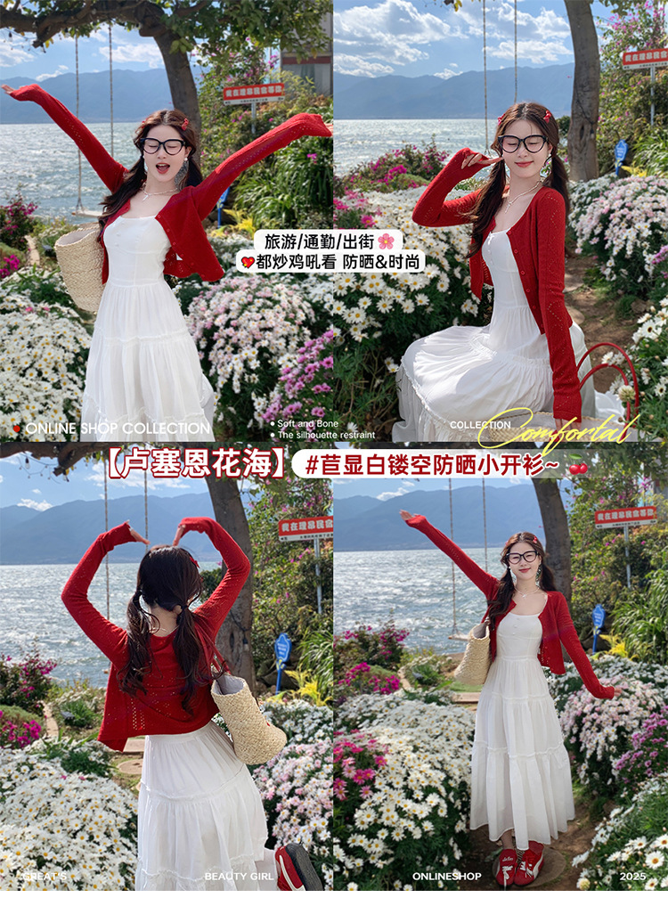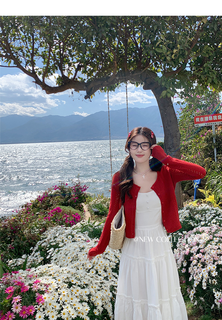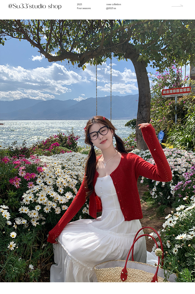 독특하고 아름다운 이른 봄 카디건 2025 새로운 슬링 아우터 스트랩 니트 코트 여성의 빨간 선 스크린 탑스토어 가기