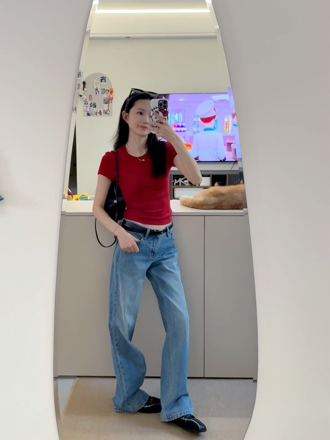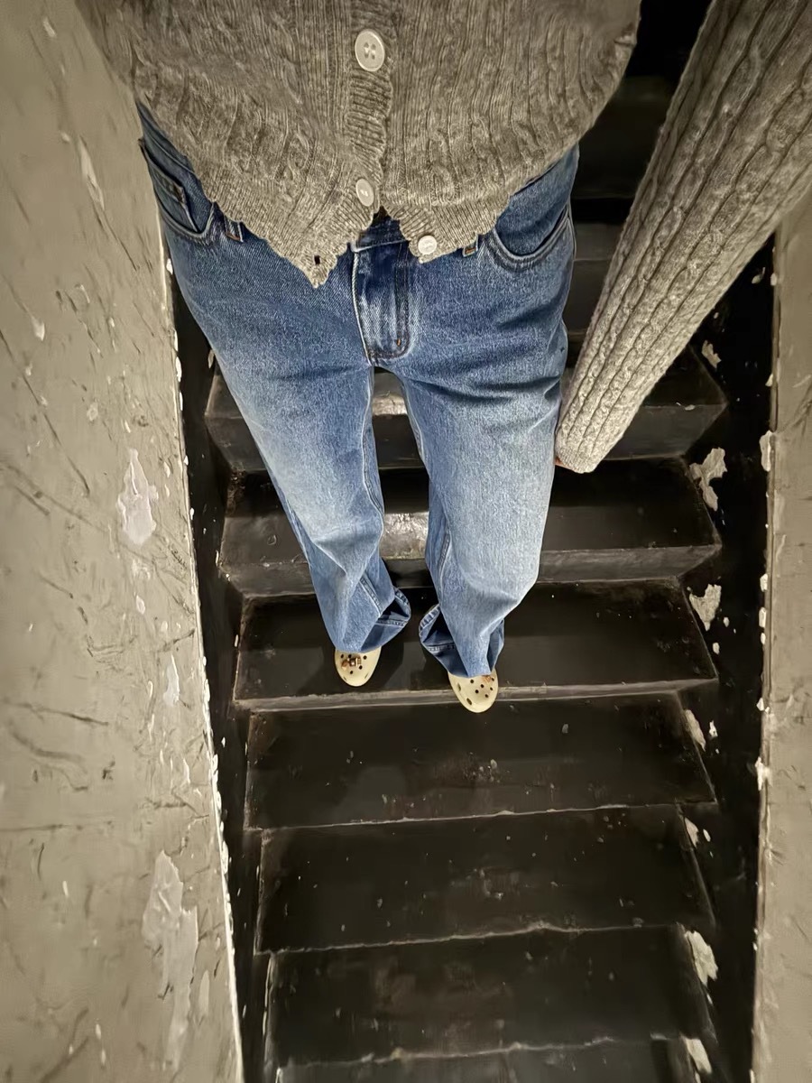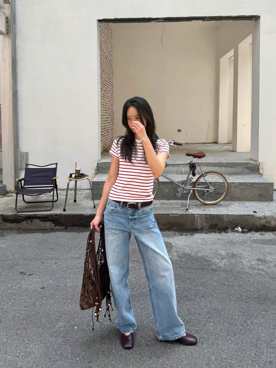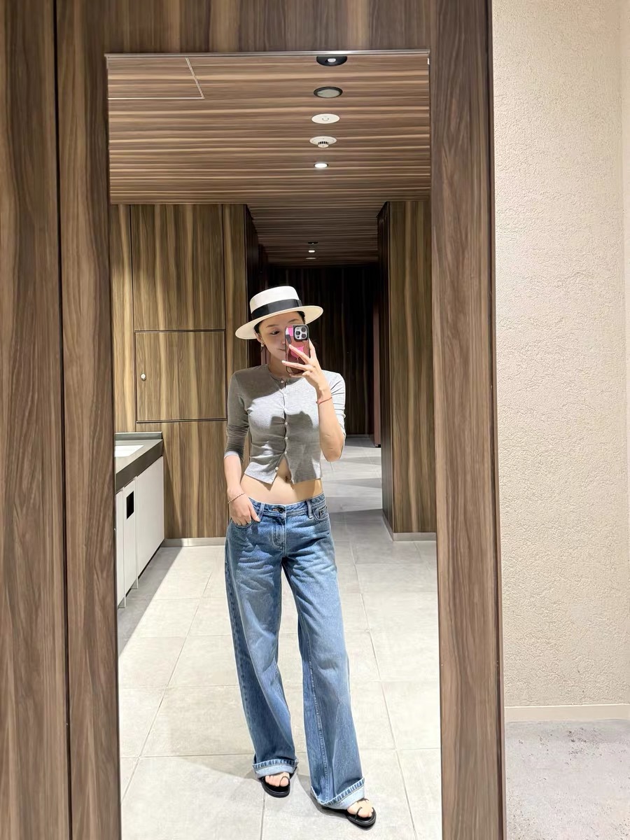 여성용 워싱 및 디스트레스드 미드 로우 웨이스트 청바지 새로운 슬리밍 080L 레트로 라이트 블루 퓨어 코튼 루즈 스트레이트 소 5010스토어 가기