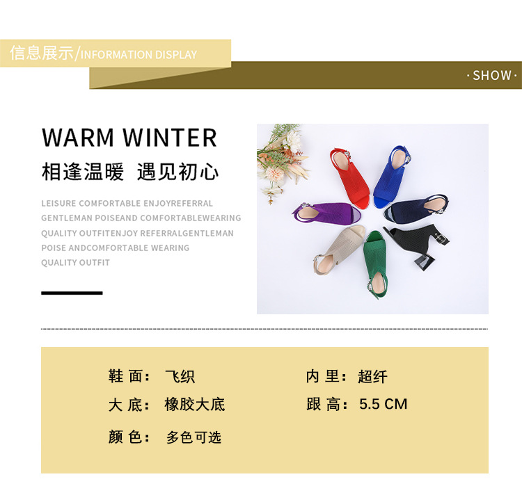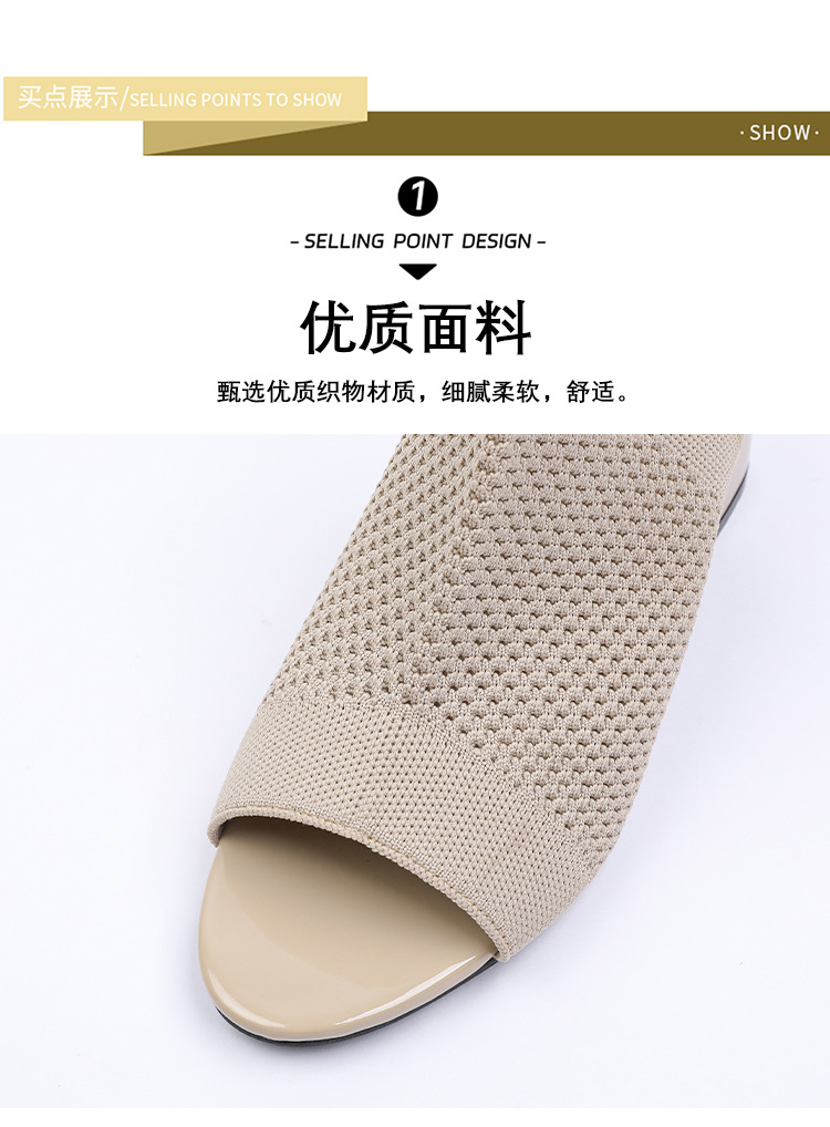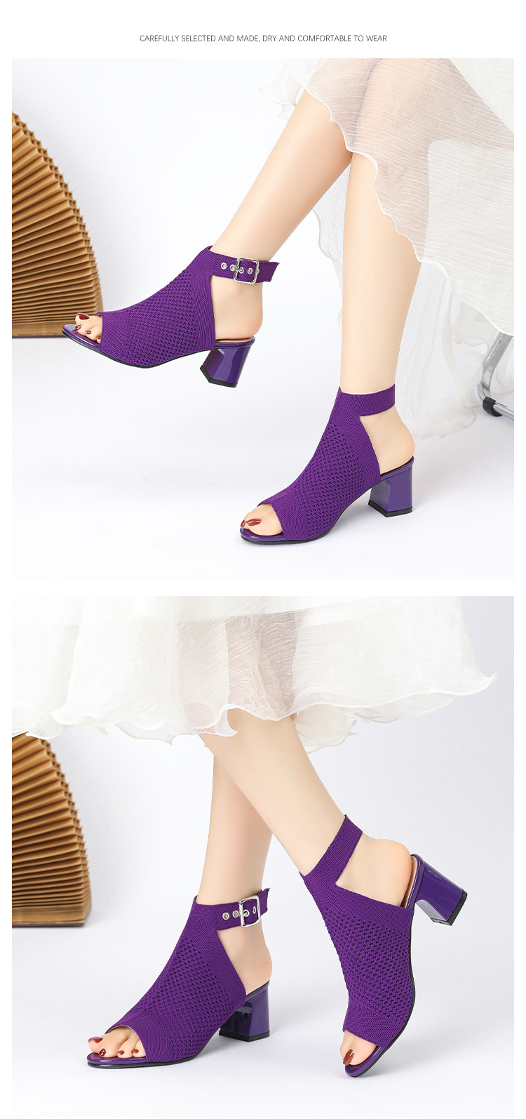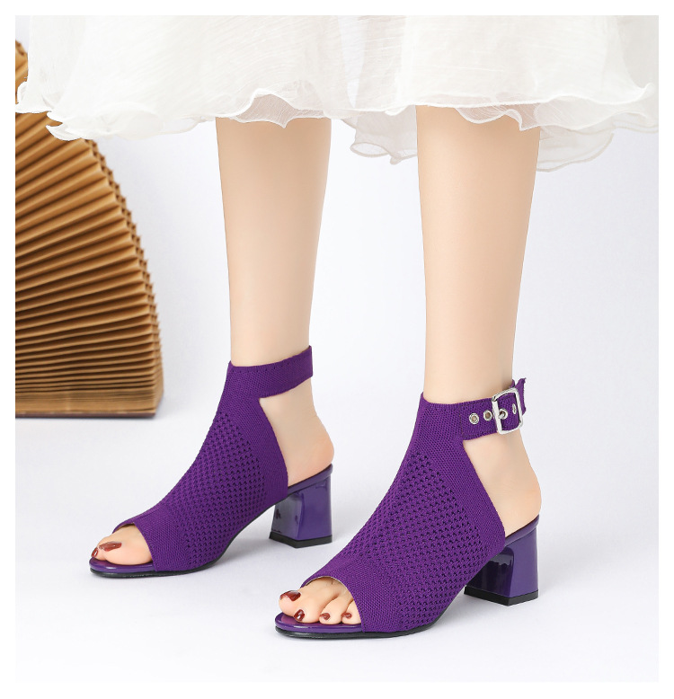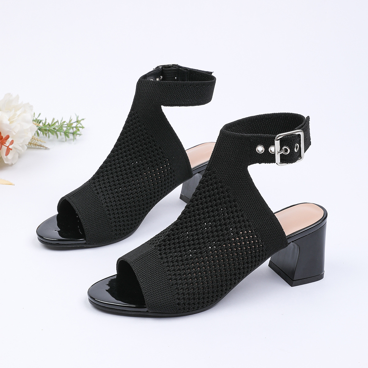 여름 새로운 패션 샌들 여성 일본식 니트 두꺼운 굽 물고기 입 부츠 버클 하이힐 샌들 슬리밍