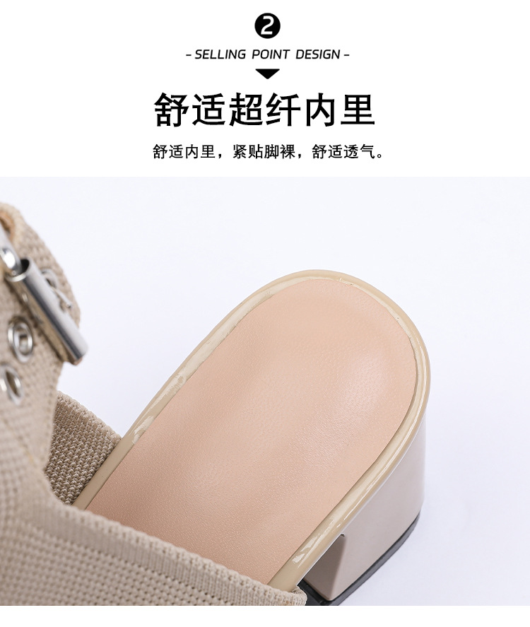 여름 새로운 패션 샌들 여성 일본식 니트 두꺼운 굽 물고기 입 부츠 버클 하이힐 샌들 슬리밍스토어 가기